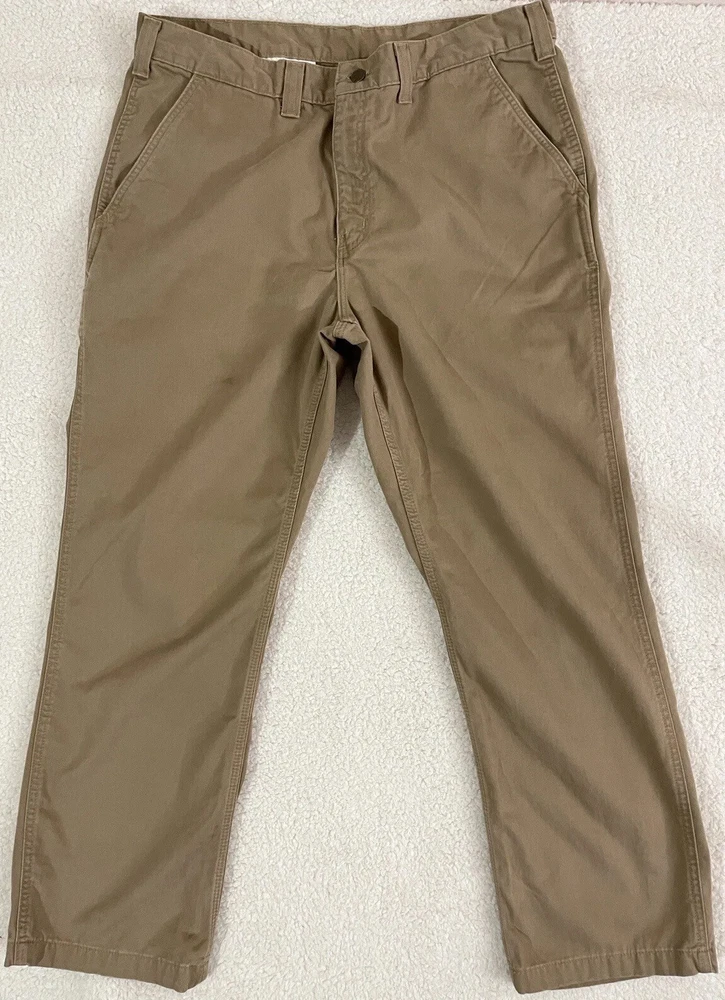 Carhartt Mens pants 38x30 Brown tan Preowned with no rips stains or tears unless noted in pictures .