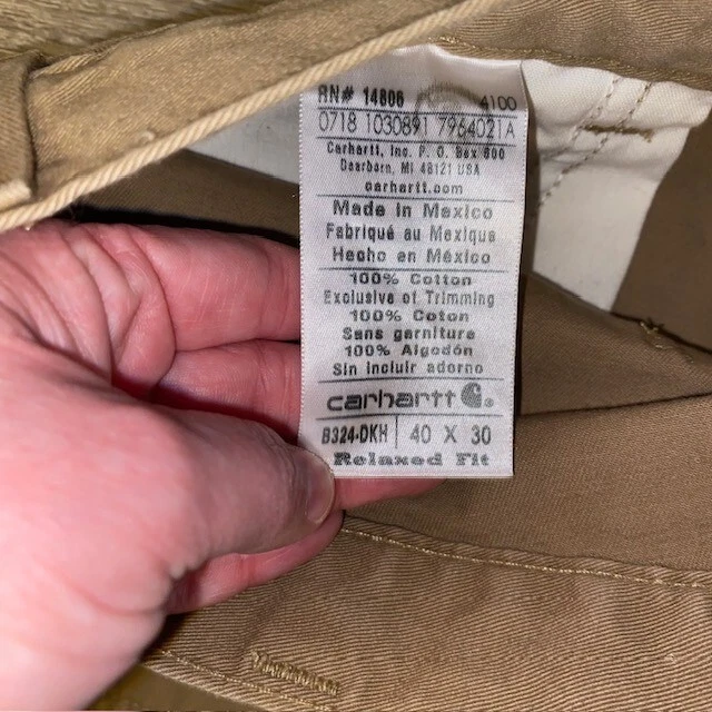 Carhartt Pants Men’s 40 B324 DKH Tan Carpenter Cargo Relaxed Fit Size 40x30 Made in Mexico 100% Cotton Machine Washable 40" Waist 12" Rise 30" Inseam