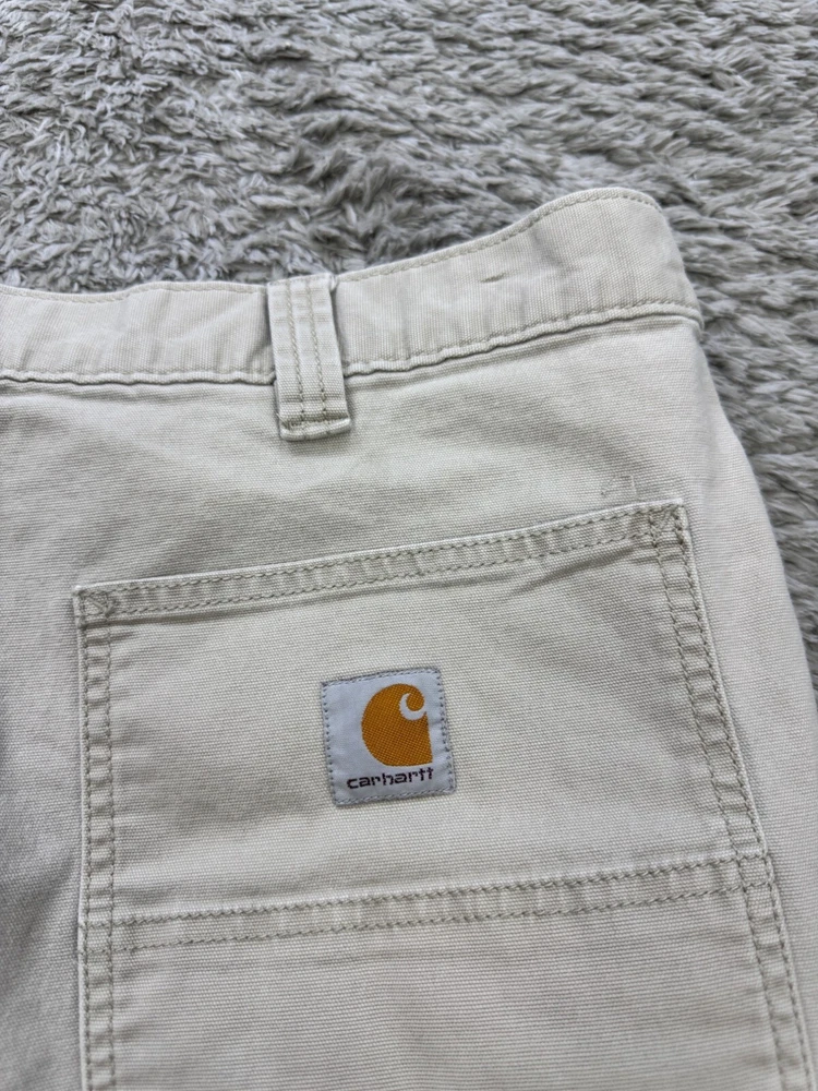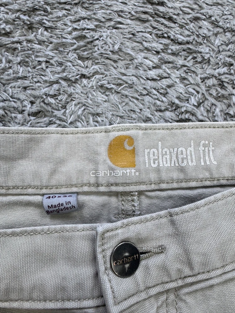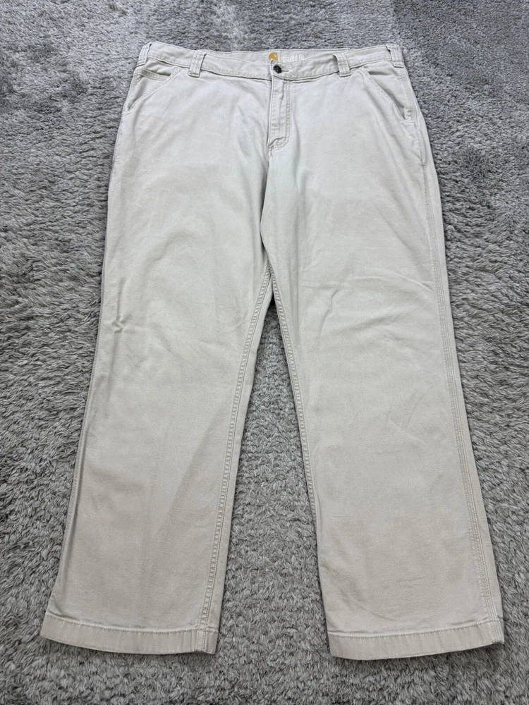 Leg Style: Straight Fabric Type: Canvas Closure: Button, Zip Occasion: Workwear Country/Region of Manufacture: Mexico Brand: Carhartt Features: Comfort, Easy Care, Pockets Color: Beige Type: Pants Style: Cargo Material: Cotton Inseam: 30 in Garment Care: Machine Washable Accents: Button, Logo, Zipper Pattern: Solid Size Type: Regular Size: 40 Pocket Type: 5-Pocket Design, Cargo Pocket, Slash Pocket Fit: Relaxed Waist Size: 40 in Rise: Mid (10-12 in) Department: Men Theme: Grunge, Logo, USA Front Type: Flat Front