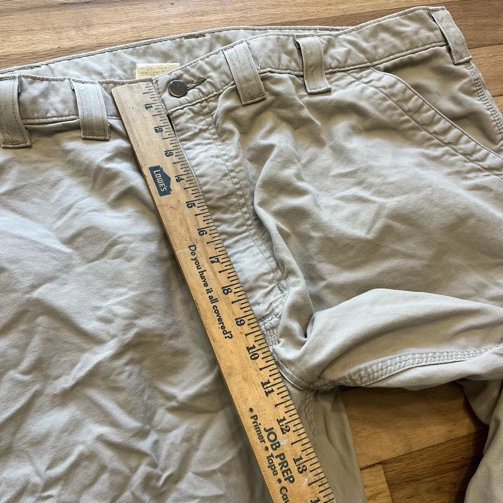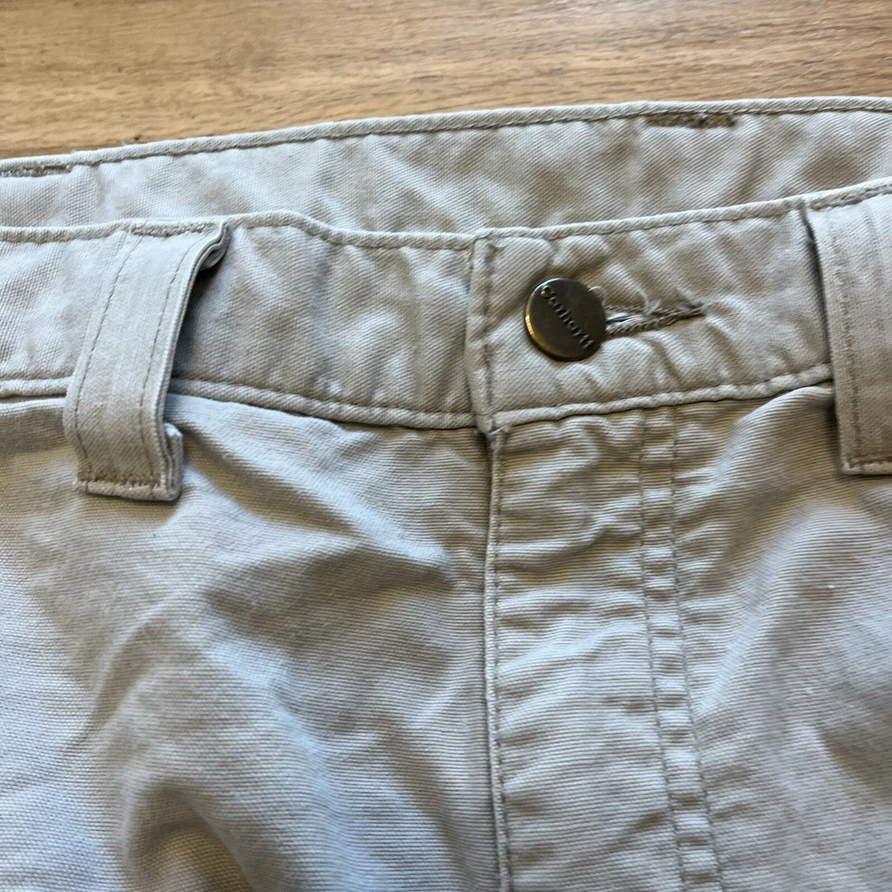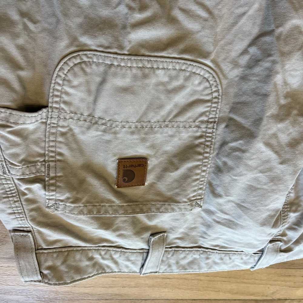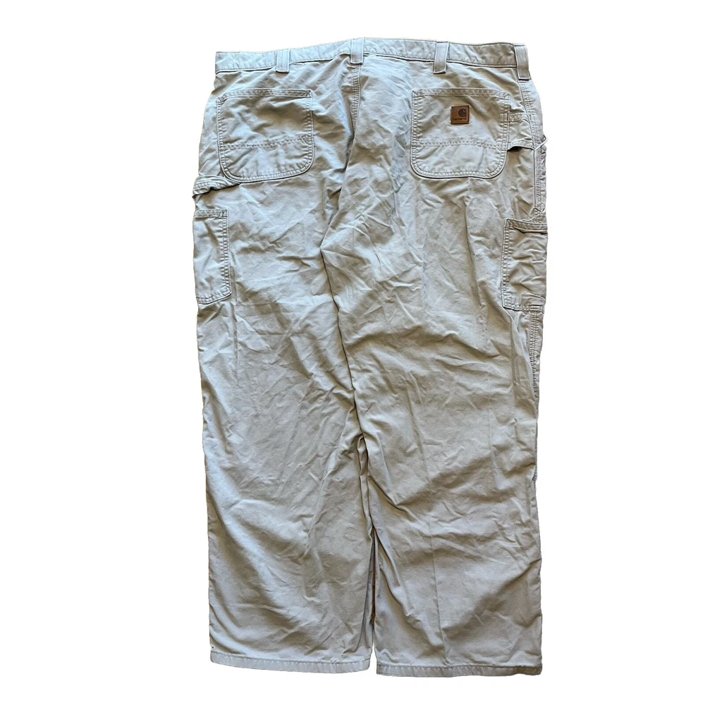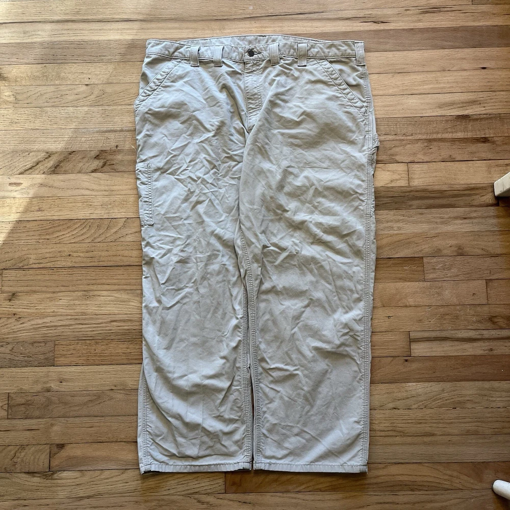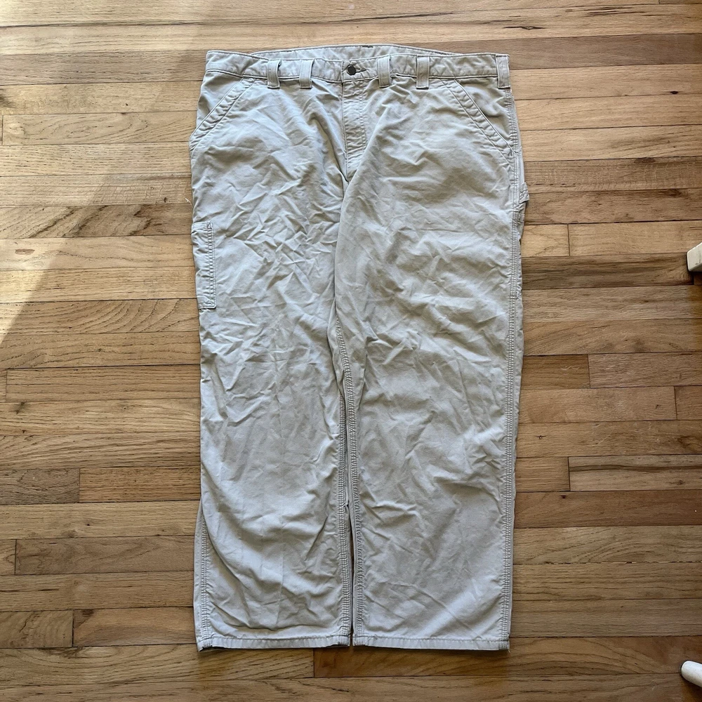 Good condition, some staining-see photos. Measurements in photos. Message me any questions! These Carhartt B11 pants are designed with a relaxed fit and a flat front for a comfortable and casual look. They are made of durable cotton canvas material and feature a 5-pocket design with a zip closure. These pants are perfect for both workwear and casual occasions, and their high-rise waist and straight leg style provide both comfort and style. The tan color and Carhartt logo accents add a touch of American and outdoor theme to the pants. They are easy to care for and can be machine washed. These pants are available in size 38x34 and are suitable for men who prefer regular size pants.