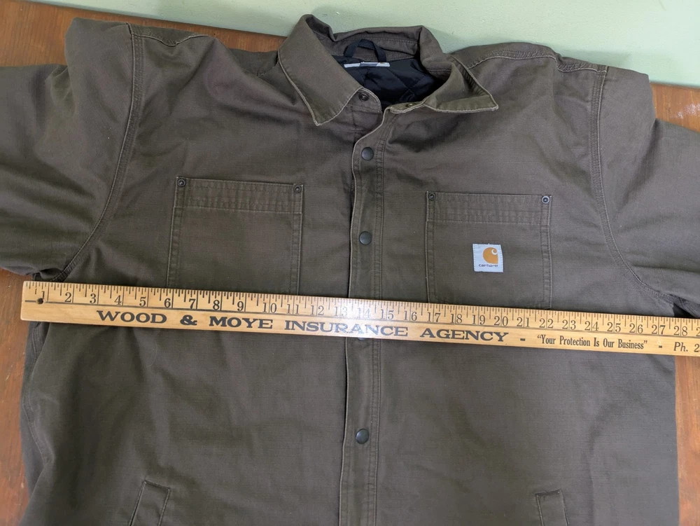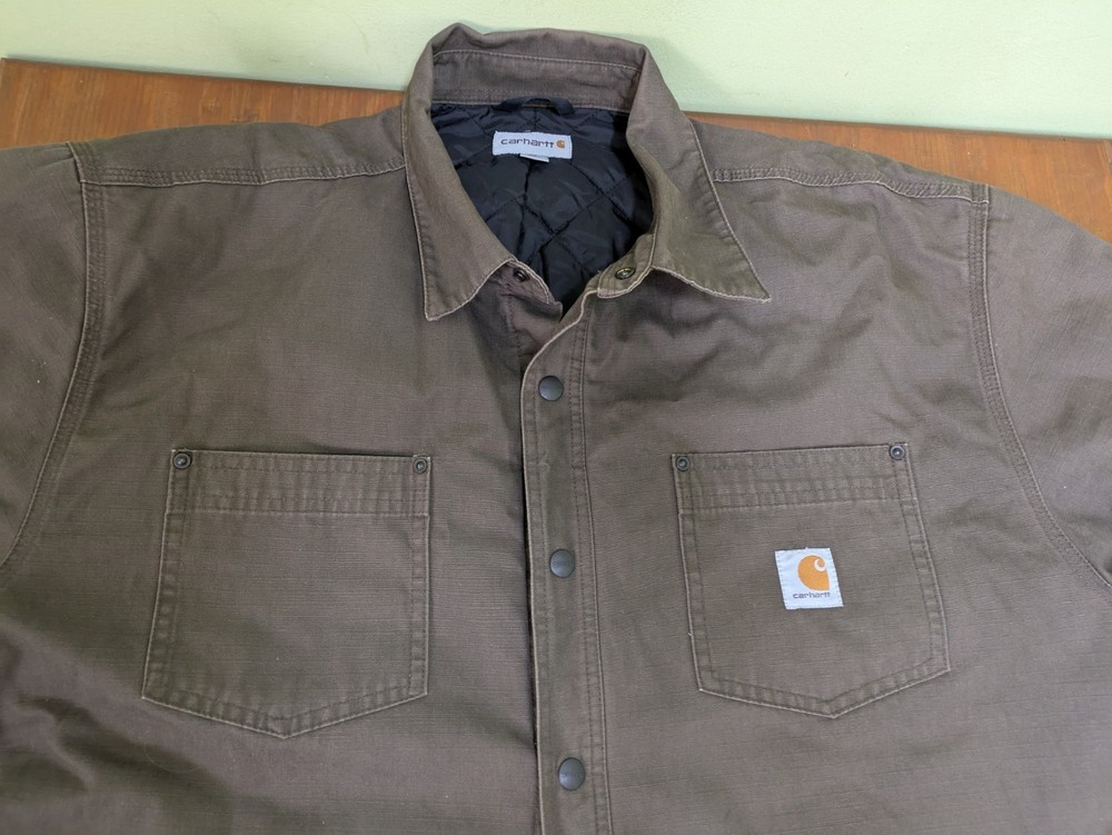 The Carhartt 101466 909 Chatfield Quilted Lined Men's Jacket in Brown is a stylish and functional bomber jacket designed for men. Made with a durable cotton outer shell and insulated with polyester, this jacket provides warmth and comfort during cold weather. The nylon lining adds an extra layer of coziness, while the ripstop fabric ensures durability. With a regular fit and size XL, this jacket is perfect for everyday wear. In very good pre-owned condition with some signs of wear. Please see pictures for the cosmetic condition and dimensions.