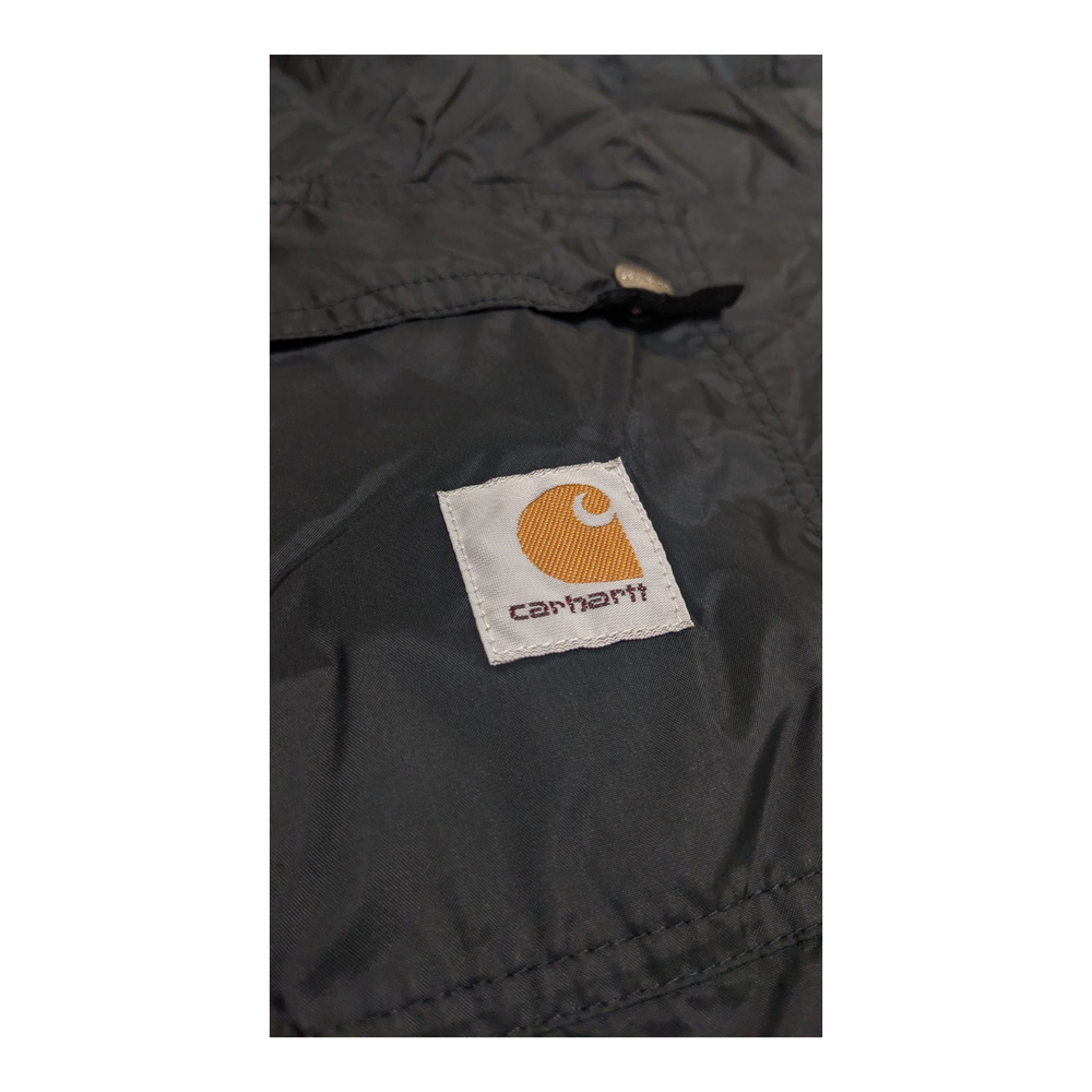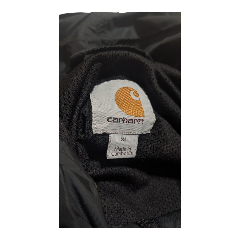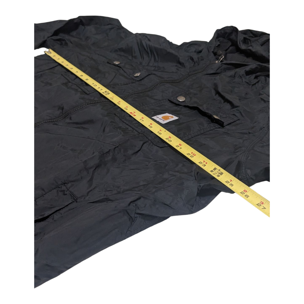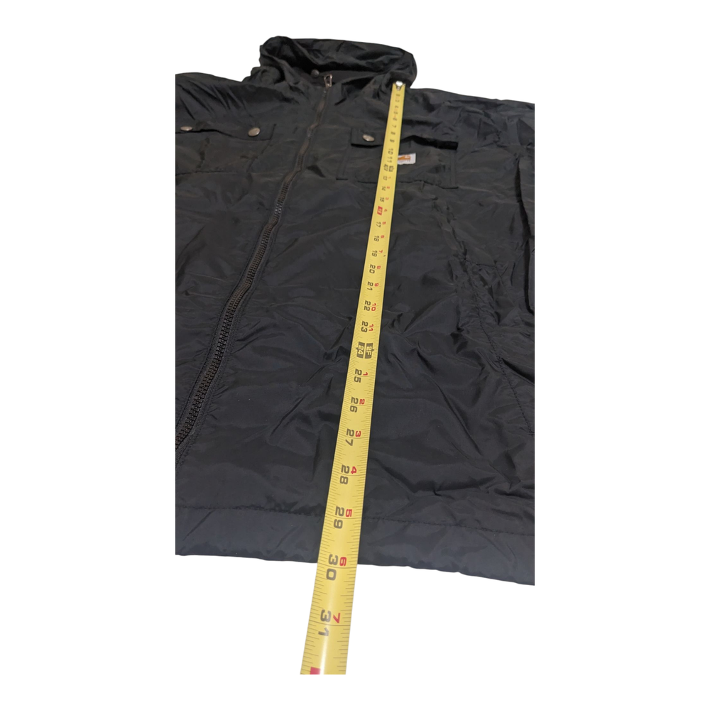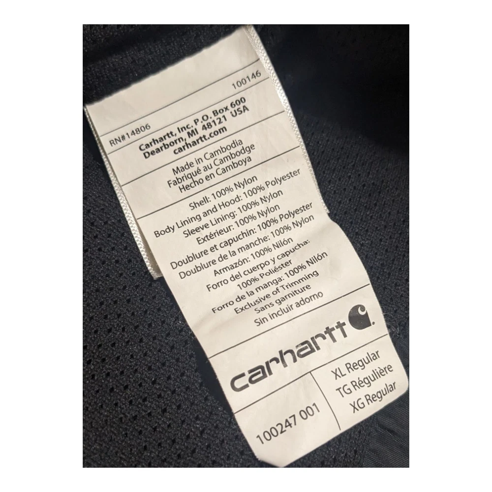 The Carhartt Rockford Men's Black 100% Nylon Jacket Parka in size XL is a classic and durable outerwear option for men. Made with 100% nylon outer shell material and lined with polyester, this mid-length jacket is perfect for outdoor activities in winter, fall, and spring. The black color and solid pattern make it versatile for various occasions such as travel, workwear, or even a party. The full zip closure and zip Snap add an extra layer of convenience, while the machine washable fabric ensures easy care and maintenance. Made by the trusted brand Carhartt, this jacket combines functionality with a timeless outdoor style.