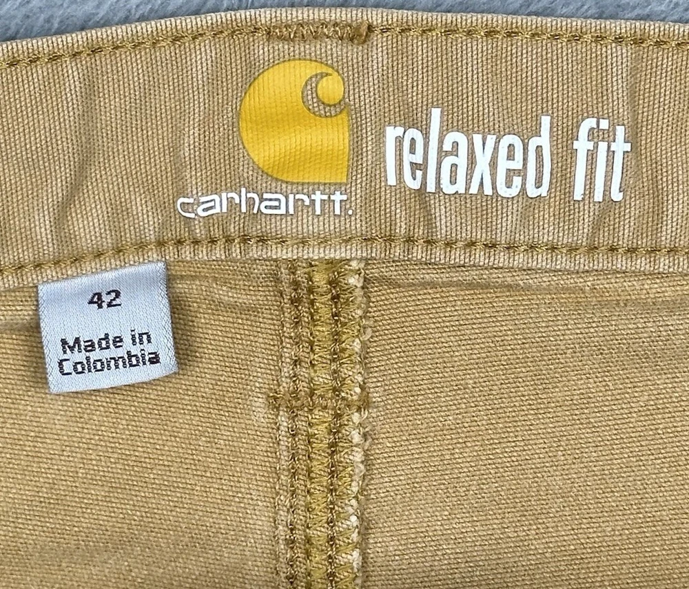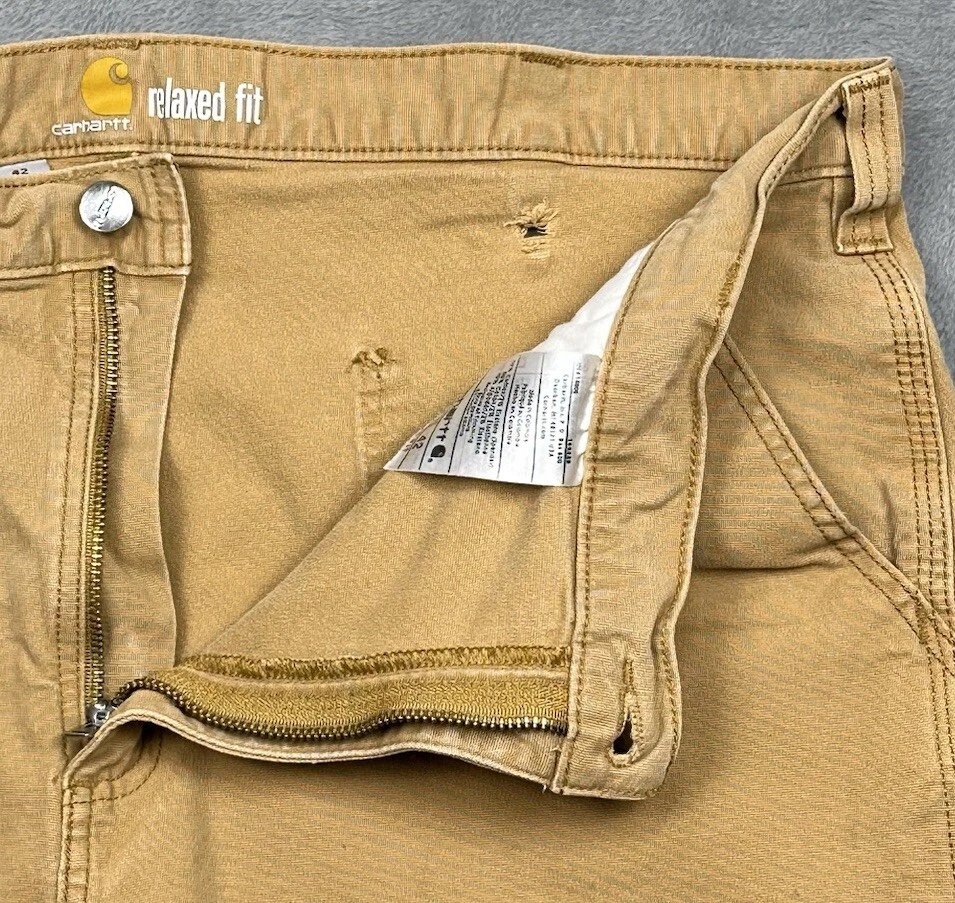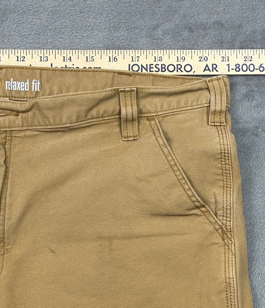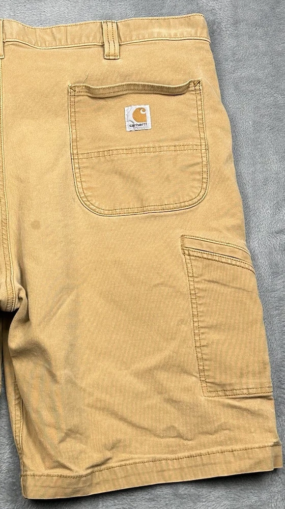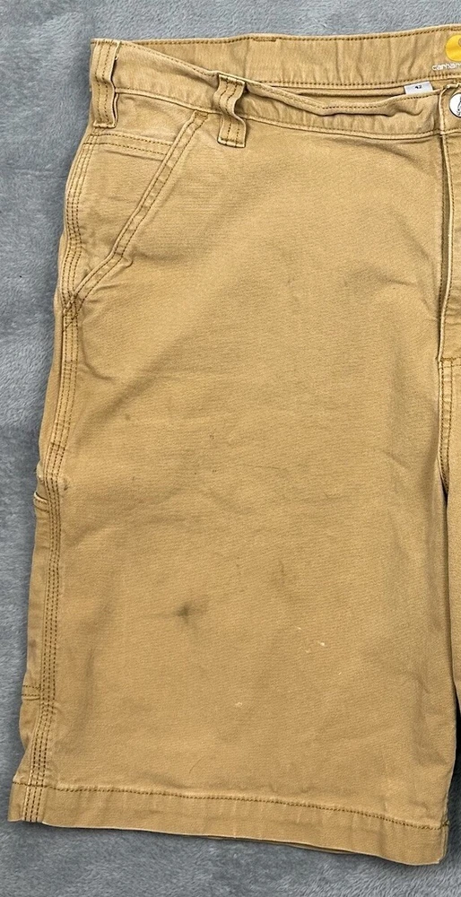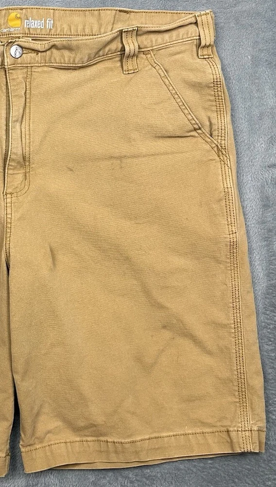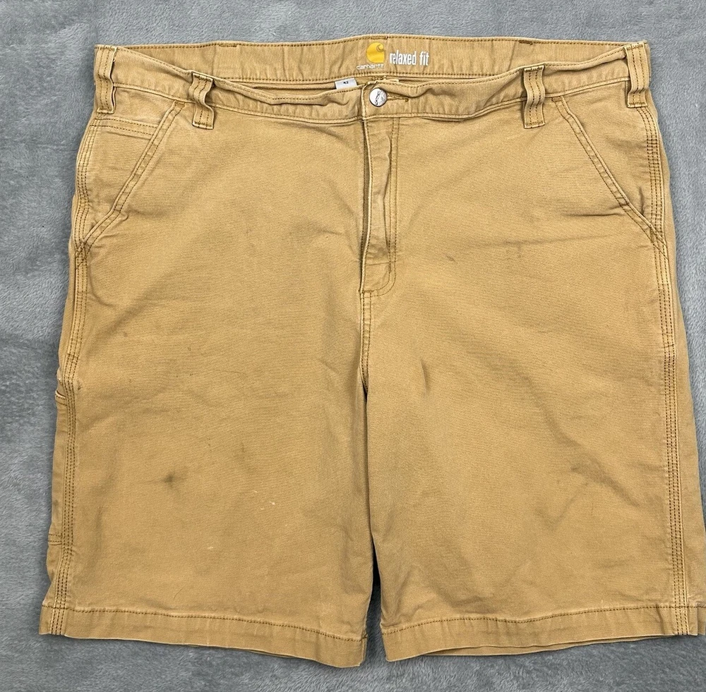 Carhartt Relaxed Fit Canvas Work Shorts Mens 42 Hickory Brown Stretch Distressed Some stains, fading and one hole - great for outside work to not distress other clothing! Good overall pre-owned condition and laundered. Please see measurements in photos. I ship next business day, but sometimes same business day and Saturday if order is paid for early enough. Please let me know if you have any questions. I am open to offers!! Feel free to look at other items in my store! Thanks!