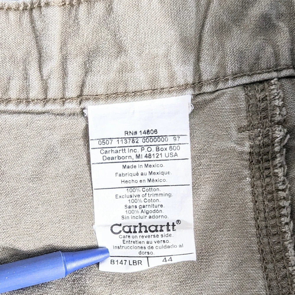 Carhartt Shorts Men's B147 LBR Sz 44 Brown Canvas Carpenter Utility Original Fit Pre-owned in excellent condition Waist measures 45 in. Rise measures 14 in. Inseam measures 10 in. Leg opening measures 14 in. Please view all images Message with any questions
