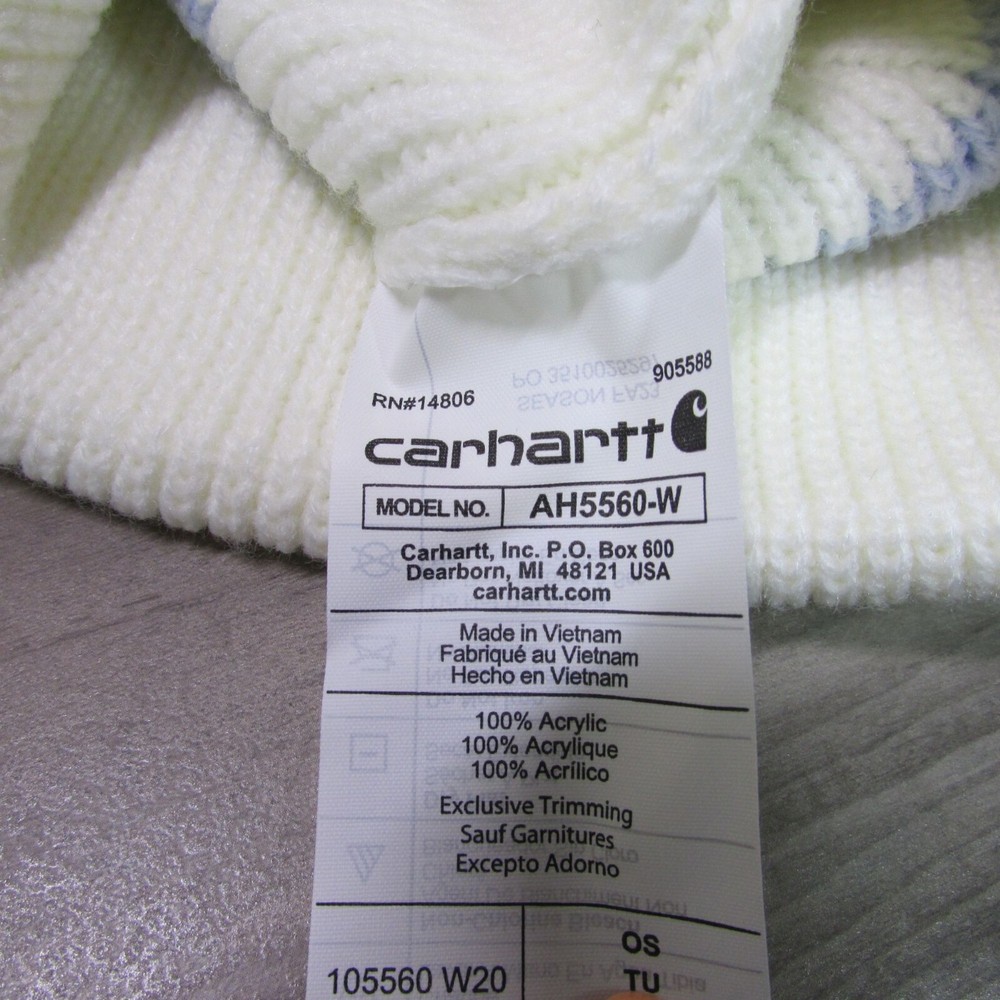 Brand new with tags One Size Brand: Carhartt Style # AH5560 Winter White Stripe Rib Knit Cuffed Beanie Stocking Cap Hat
