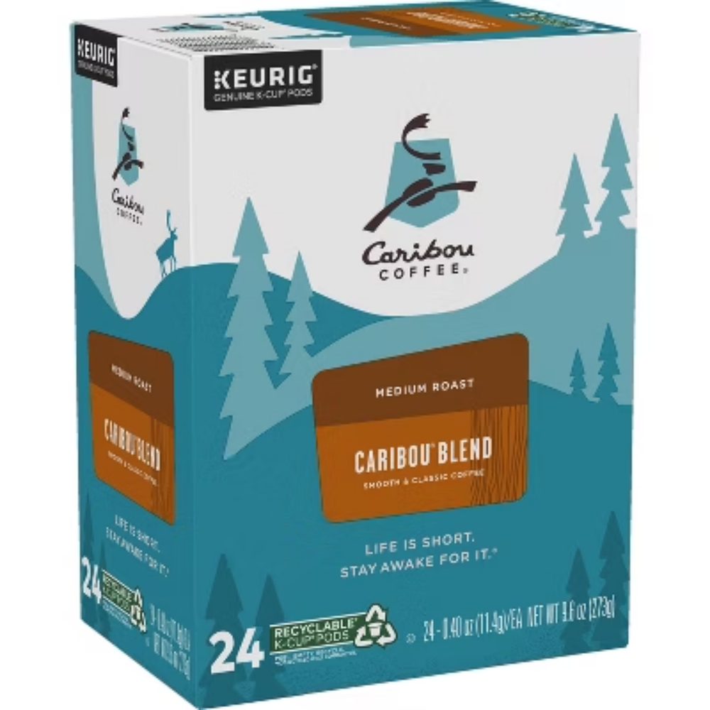 ROAST: Caribou Coffee Caribou Blend is a caffeinated medium roast coffee made with specialty-grade Arabica beans. THE CROWD PLEASER: Our signature crowd pleaser, featuring balanced acidity, a milky body, and caramel sweetness. CARIBOU COFFEE: Brewing joy since 1992, Caribou Coffee exists for those who believe life is not only what you make of it, but how you live it. In everything we say and do, we look for ways to delight consumers with an experience that goes beyond the expected. COMPATIBILITY: Contains genuine Keurig K-Cup pods, engineered for guaranteed quality and compatibility with all Keurig single serve coffee makers. RECYCLABLE* K-CUP PODS: Simple. Delicious. And recyclable. Enjoy the same great-tasting coffee you know and love, and when you’re done, just peel, empty, and recycle. *Check locally, not recycled in many communities. One 24-count pack of K-Cup Pods