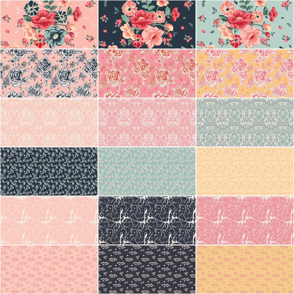 Fabric bundle of 18 18-inch by 22-inch fat quarters from the Ciao Bella collection by designer Carina Gardner for . Ciao Bella is a modern twist on your European grandma's linens and vintage soft goods. The intricate details in the damask and florals hint at heirloom quality while the color combinations bring the entire collection into the modern era. Ciao Bella collection from Designed by Carina Gardner Fat Quarter Bundle includes 18 18-inch by 22-inch fat quarters 100% Cotton; premium quilt shop quality fabric