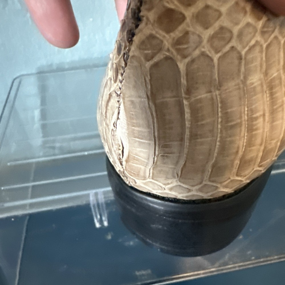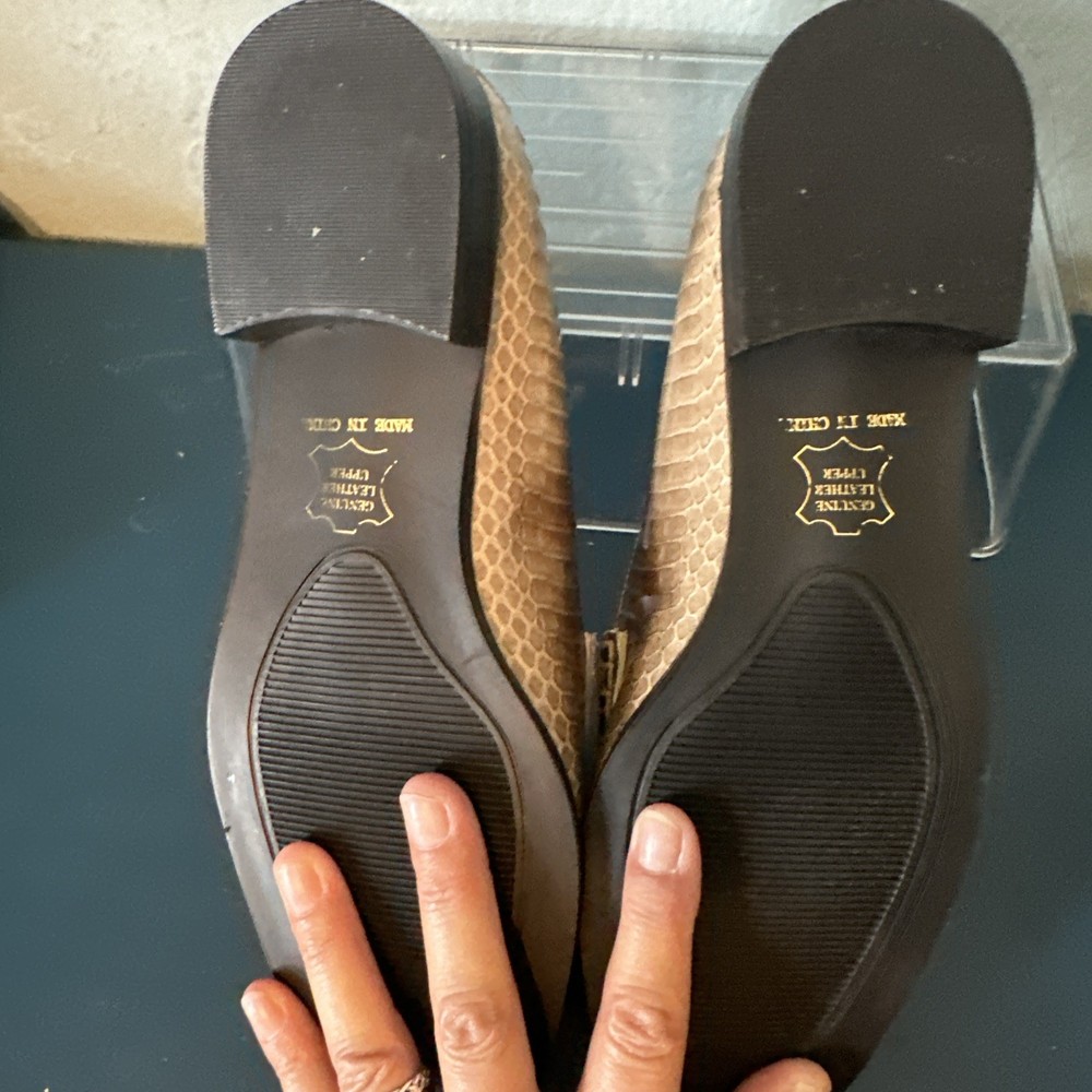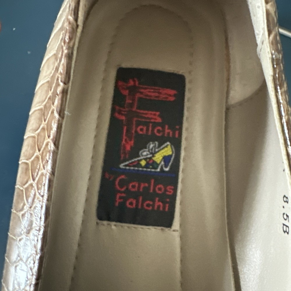 Carlos Falchi Lana Loafers Croc Print Brown Leather Apron Round Toe Shoes Sz 9B. Shipped with USPS Ground Advantage. See pics back of left shoe has imperfection