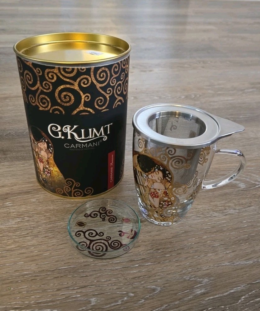 The Carmani 12 Oz Glass Tea set featuring Gustav Klimt Art is a unique and stylish addition to any tea lover's collection. With a beautiful multicolor design inspired by the famous painting "The Kiss" this mug is perfect for all occasions. The Art Nouveau style and artistic theme make it a standout piece for those who appreciate art and creativity in their dinnerware. Made in Poland by the brand Carmani, this tea set is a must-have for anyone looking to add a touch of elegance to their tea-drinking experience. New in Box! I have 2 of these available, both brand new in Box. If you would like to purchase both, I would be happy to offer you a 10% discount! From smoke-free 🚭 daushaund friendly home 🐾