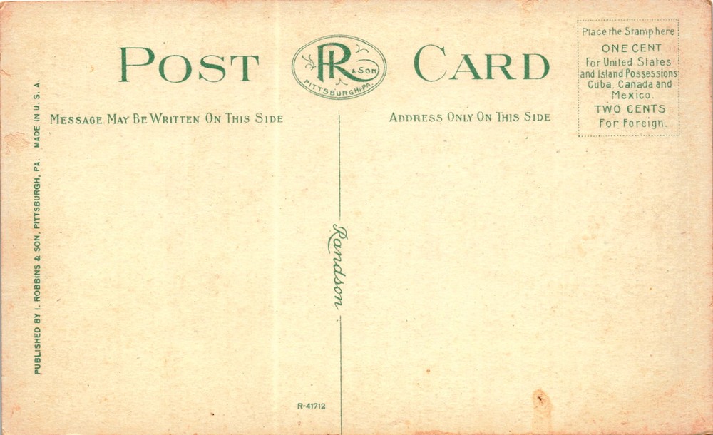 MAKE AN OFFER. THE MORE YOU BUY THE BETTER DEAL I WILL ACCEPT The postcard features an image of the Carnegie Library in Schenley Park, Pittsburgh, Pennsylvania. The front of the postcard has instructions for postage rates for mailing within the United States, as well as to Cuba, Canada, Mexico, and other foreign destinations. The postcard was published by I.