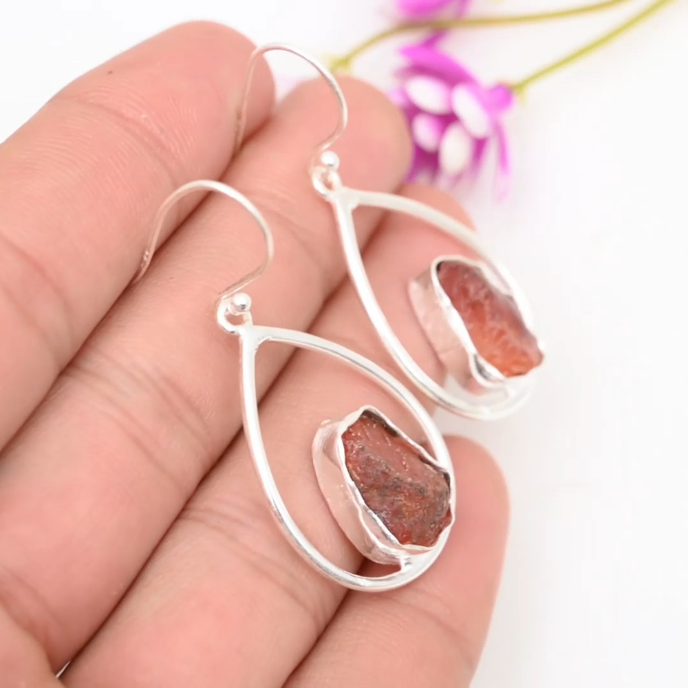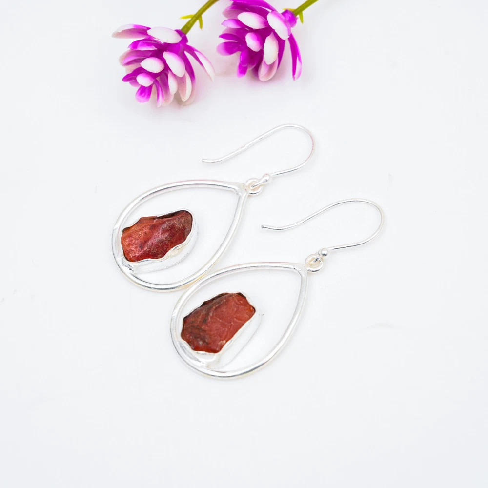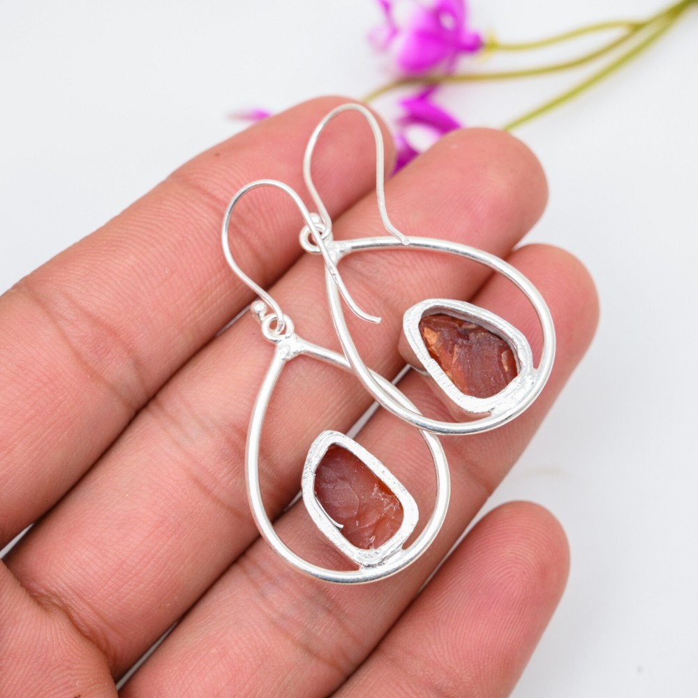 Carnelian Raw Stone 925 Sterling Silver Handmade Earrings Wedding Gift