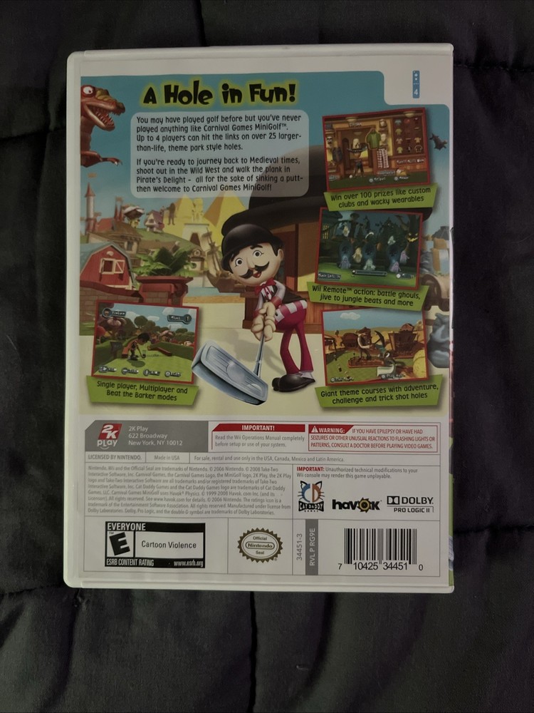 Carnival Games MiniGolf game disc for Nintendo Wii. Complete with manual, no scratches on disc.