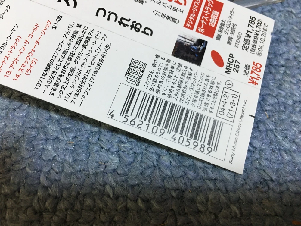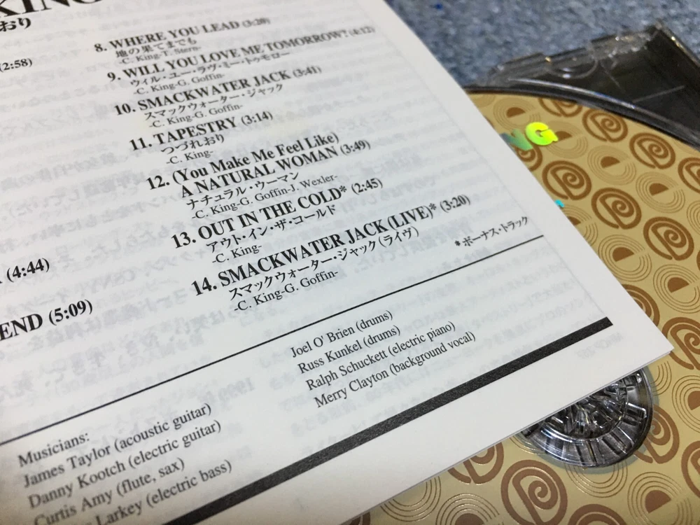 Carole King / Tapestry Japan Reissue Ver Remaster OBI Bonus Track Liner Notes Description American Singer-Songwriter Carole King's 2nd Solo Album 1971 Released. Japanese Version with Remaster, OBI, Bonus Track and Liner Notes. 2004 Released. -------------------------------- 01. I Feel The Earth Move 02. So Far Away 03. It's Too Late 04. Home Again 05. Beautiful 06. Way Over Yonder 07. You've Got A Friend 08. Where You Lead 09. Will You Love Me Tomorrow? 10. Smackwater Jack 11. Tapestry 12. (You Make Me Feel Like) A Natural Woman 13. Out In The Cold (Previously Unreleased) 14. Smackwater Jack (Previously Unreleased Live Version) -------------------------------- Payment Please look at "Payment Details" on the "Shipping and payment" tab. You can choice Some Payment Methods. Please pay within 5 days after auction is finished. Shipping / Postage --- Economy Shipping ----------------- [ International ePacket ] [ Registered Airmail ] - Airmail - Registered - Insurance (Maximum about 50 USD actual loss) - Tracking(only for some countries) https://www.post.japanpost.jp/int/ems/delivery/ems_search_en.html#r-airmail --- Standard Shipping ---------------- [ EMS(Express Mail Service) ] - Airmail - Insurance (Maximum about 180 USD actual loss) - Tracking https://www.post.japanpost.jp/int/ems/country/index_en.html You can reduce shipping costs by Combined Shipping. Only items purchased within 3 days can be shipped together. All successful bids must be paid for at the same time. Please wait for payment once you have won the auction. We will resend you an invoice with recalculated shipping costs. Due to the on-going virus situation, there is a possibility delivery will be somewhat delayed. If you want to know information about your country, please check URL below. https://www.post.japanpost.jp/int/information/overview_en.html Terms of Sale You can return item in 30 days after receiving an item. Refund of a shipping cost is not paid by us. International Buyers - Please Note: Import duties, taxes and charges are not included in the item price or shipping charges. These charges are the buyer's responsibility. Please check with your country's customs office to determine what these additional costs will be prior to bidding/buying. These charges are normally collected by the delivering freight (shipping) company or when you pick the item up -do not confuse them for additional shipping charges. We do not mark merchandise values below value -US and International government regulations prohibit such behavior. Thanks for looking!