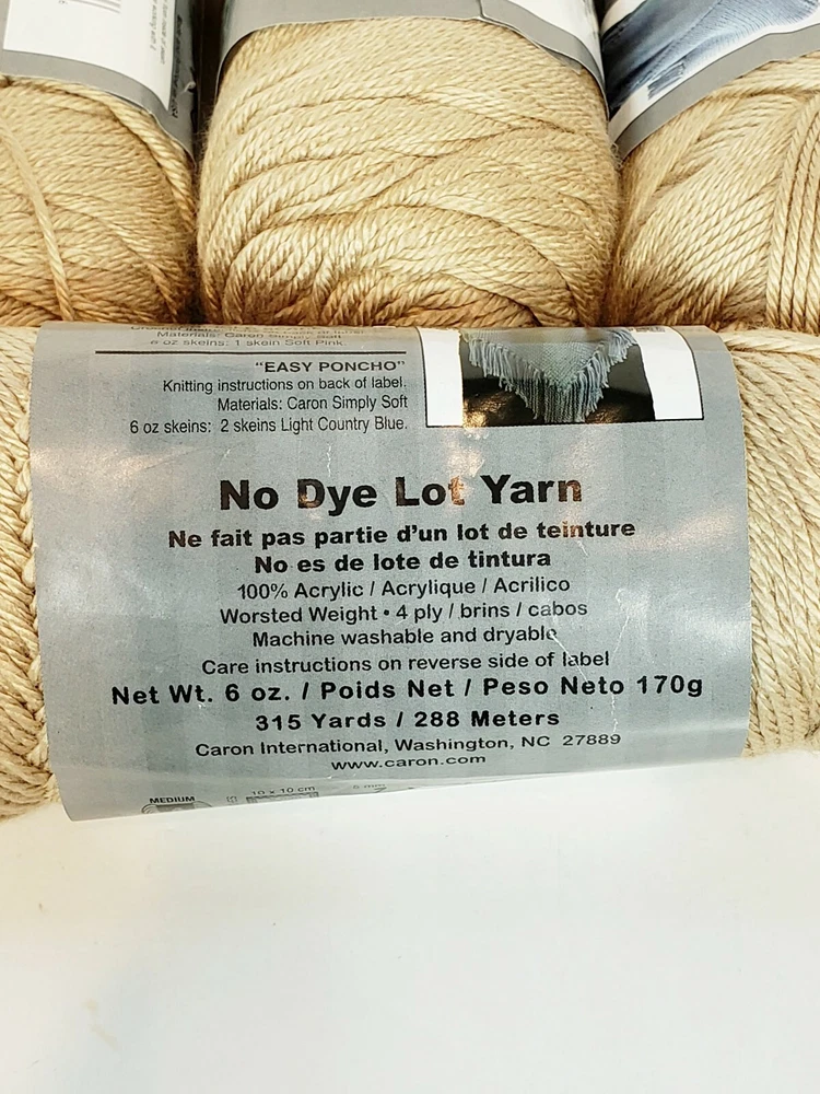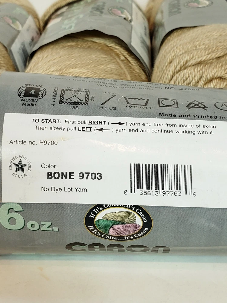 Caron 4 Skeins Simply Soft Yarn 6oz 9703 Bone . Lot of 4 Skeins medium 4 . 5mm 315yds each skein Condition is New.