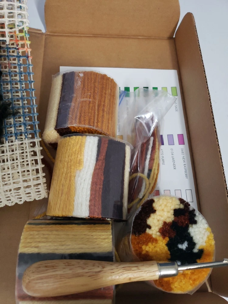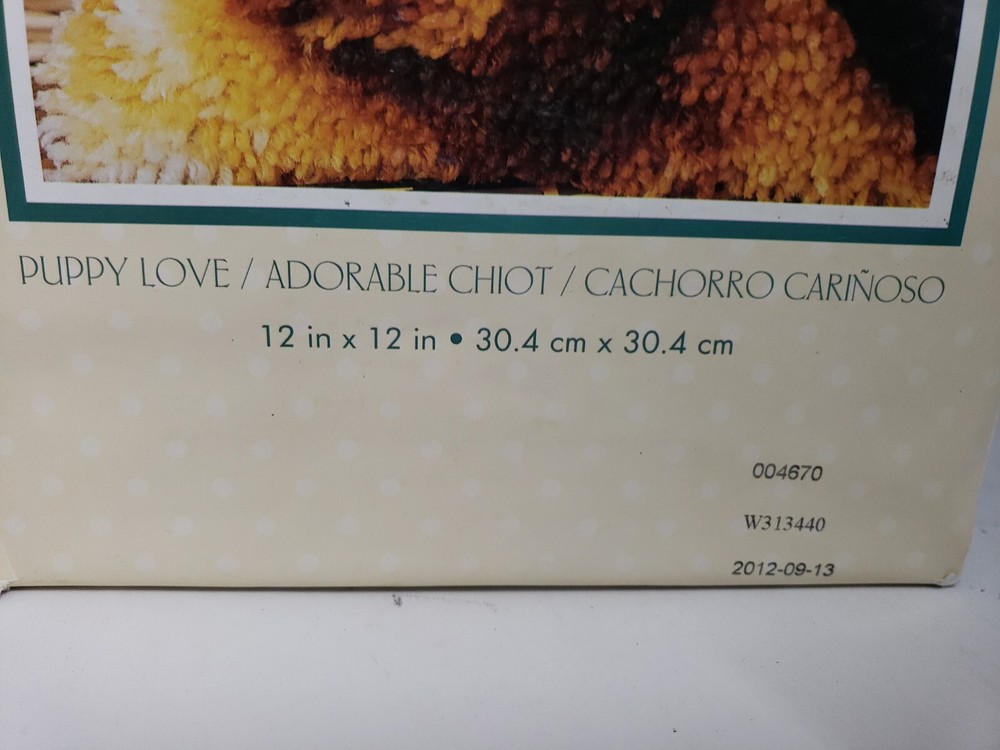 Crochet WONDER ART Caron LATCH HOOK KIT # 4670 PUPPY LOVE 12" X 12" Labrador. Condition: open box, comes with Latch hook Tool, a few used items included, see actual pics