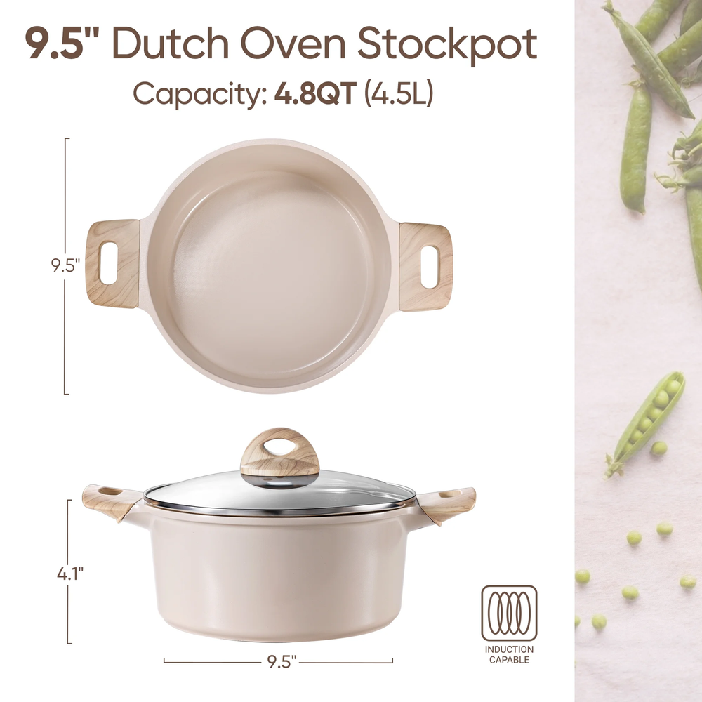 FOR YOU Carote Non Stick Ceramic Dutch Oven, Non Toxic Stockpot with Lid, Easy to Clean, All Stoves Compatible, 4.8QT, Taupe FEATURES Why Carote? Enjoy the Best Value Carote has been committed to providing you with the best quality at the most fair and honest cost, with 25 years of experience in the non-stick cookware industry. We sell directly from our factory. A typical M2C model allows us to offer the lowest cost with higher quality products. We always adhere to the principle of customer first, pay attention to the customer's shopping experience, and provide customers with excellent service to ensure that every customer gets the Best Value for Money. Ceramic nonstick coating with durability of perfection is free of harmful chemicals. You can enjoy your cooking on carote cookware safely & easily. Enjoy effortless cooking and cleaning with exceptional performance and ultra-nonstick coating. Even & rapid heat delivery without hot spots ensures food cook the same everywhere on the pan while boiling, simmering, reheating. The reinforced die-cast aluminum construction of this dutch oven makes it resistant to wear and tear, allowing it to withstand frequent usage without compromising its performance. Durable ceramic finish resists scratches and discoloration, keeping your cookware looking new after everyday use. Features Induction Compatible, Nonstick Brand Carote Cleaning, Care & Maintenance Just gently wipe it with a paper towel or rinse it with water Assembled Product Dimensions (L x W x H) 14.17 x 9.96 x 7.28 Inches 7.28 inches x 14.17 inches x 9.96 inches. PAYMENT We accept all payments via Ebay using Credit Cards , PAYPAL , Apple Pay and many others SHIPPING We are always working hard to ensure your package arrives as soon as possible. Please understand that some factors like weather, high postal traffic, and the performance of shipping companies are outside of our control. DELIVERY & RETURN POLICY We offer a 30-Day Return Policy on items in which you are not completely satisfied with. You have the option of a full-refund or an exchange of the item. No returns are available on items shipped outside of the USA.