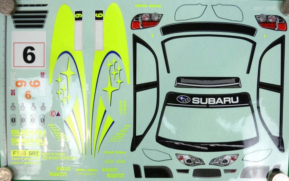CLEAR UNPAINTED LEXAN BODY SHELL to suit a 1:10th scale touring, race,drift or rally car. Body shell is as per pic #2 above --Subaru Impreza WRC 2007 -supplied with decals, pics #4~#6 (note-white swirls etc are fluro yellow-scanner couldn't handle it -but camera dis a fair job-see pic #6). Also supplied are light buckets, wings screws etc - shown in pic #3 and window masks (not shown). Pic #1 is a sample picture only of what a finished shell could look like and as an aid to decal placement (no decal instructions are included) Body shell is for a chassis (wheelbase) of 258 mm and a wheel track up to 200mm. Item is new. B rand is COLT. All Colt bodies are covered with clear spray film. Note that often Colt trim the shells for freight purposes so excess plastic may be less than shown above. This item will be sent in a box (for safety) not a padded bag. Part # M2321 Check out other great bargains in my E b a Y store , including more body shells. I am not a "drop shipper", all products are in stock in Australia being sold by an Australian seller. POSTAGE - AUSTRALIAN CUSTOMERS . If you want to use the Express Post service please buy one item and select Express post, then buy any other items you want with regular post (the default option). All items will be sent together via Express Post service……… INTERNATIONAL CUSTOMERS . For post quotes for multi item orders please message me. Thanks. All duties and taxes (if applicable) are the responsibility of the buyer. If you have any questions or special requests regarding this please feel free to message me. Manufacturers are constantly improving products and changes are made without prior notice. This means that changes can be made to products (including slight colour changes) from time to time. These changes in no way constitute any intent to change the basic description of an item, nor do they constitute a reason for an items return or warranty replacement. Return Policy: Any returns will be handled as per Ebay’s return policy. Returned items must be new, unopened and undamaged. Opened returns will attract a 50% “reduced value” fee. Any unrecoverable costs and fees incurred (by me) will be deducted from any refund issued. Warranty: items have a 30 day warranty, except drift wheels – which is ‘dead on arrival’ only. Warranty doesn’t cover crash damage, poor maintenance, misuse or incorrect assembly. Warranty covers sold items only.