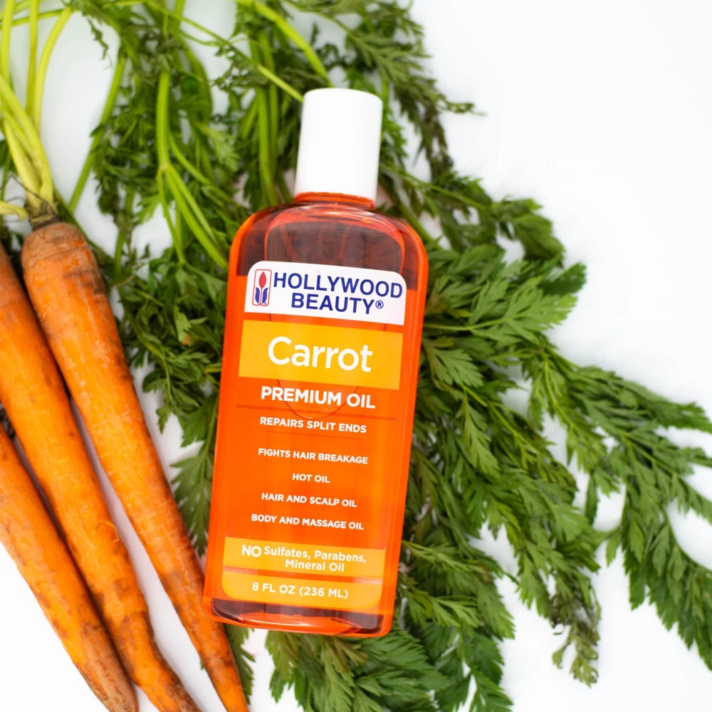 B004VTTXRM 8oz bottle of carrot oil Can be used on hair, skin, and nails Carrot Oil will penetrate the hair shaft and help repair damaged hair and scalp Use the warmed oil to moisten your skin and nail cuticles Can be used as hot oil treatment