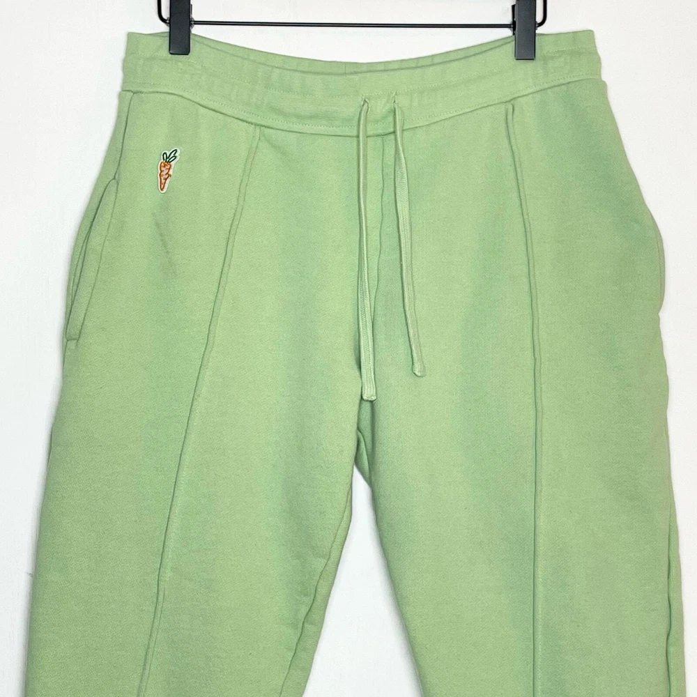 Carrots Sweatpants Men's Size Small Sage Green Drawstring Elastic Waist Brand: Carrots Size: Small Style: Sweatpants Color: Sage Green Condition: Good Preloved Condition (stain on front) Carrots logo sprouts up one leg of sweatpants made of cotton-blend fleece in a fit that's relaxed and gives you comfortable room to grow. Approximate flat lay measurements Waist 16in Rise 11.5in Inseam 24in
