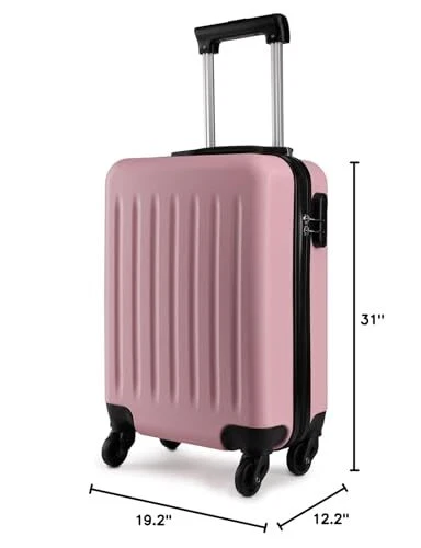 PORTABLE MINI CARRY ON: Product dimensions (includes wheels and handles): 18.9” x 11.8” x 7.9”. Weight: 4.7 lbs. PACKING CAPACITY: 27L. Even 6-year-old children can easily use our products. 19 inch carry on luggage meets most carry-on size restrictions for those 1-3 days traveling domestically. LIGHTWEIGHT AND DURABLE HARD SHELL: Made from durable, lightweight ABS hard shell, scratch and pressure-resistant, dirt-proof and waterproof. luggages go through insanely strict quality control test standards, to ensure our products can withstand the rigour of modern transport. IDEAL INTERIOR SPACE TO KEEP BELONGS TIDY: Designed with 2 roomy fully lined compartments. The packing straps hold your clothes in place, a zipper mesh pocket for anything you want to keep separate. Not only a perfect small luggage for yourself, also a cute gift for your families, friends, or school children. MORE EFFORTLESS TRAVLING: Our hardshell luggage comes equipped with Quiet airplane spinner wheels and an adjustable 3-level aluminum telescoping handle(extended heights: 18.9inch), allow you to quickly maneuver in tight spaces and it’s sturdier than most of the telescoping handle on the market. COMFORTABLE AND SAFE: Comes with a 2-year warranty. Safety Combination Lock & Securely Mounted Short Handle, you can make sure your valuables are secure and safe and use conveniently when traveling. Hardside carry on luggage perfect for work travel, weekend getaways, or as international carry-on.