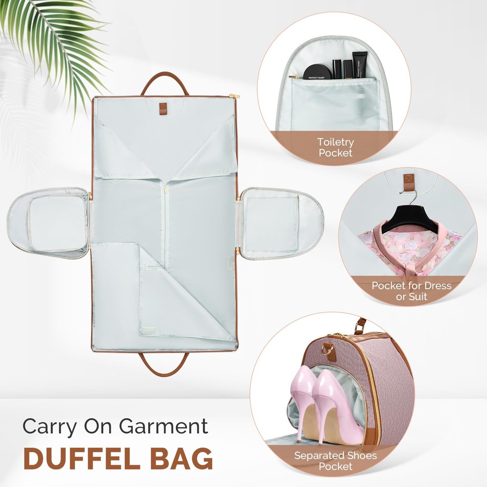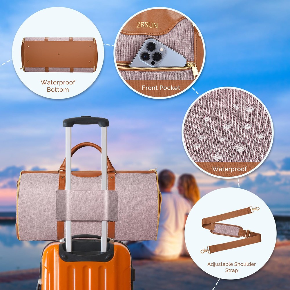 This travel bag is a game-changer! It keeps my suits crisp and wrinkle-free while offering plenty of space for shoes and essentials. The water-repellent material and sturdy zippers make it perfect for business trips or quick getaways. Love how it converts from a garment bag to a duffel—so versatile and well-designed. Highly recommend for anyone who wants to stay organized on the go!