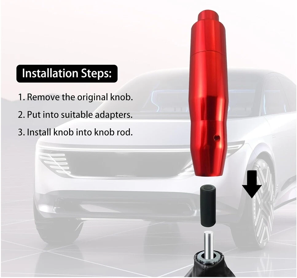 Describe: Colors: Red Material: aluminum alloy Transmission: Automatic Unique appearance and good feel. High quality for enhanced strength, durability and variable speed. Easy to install on your car and looks very cool. Universal thread adapter makes it suitable for most manual and automatic vehicles. Adapter diameter: As show Installation steps: Remove the gear of the original car shift knob. Select the appropriate size plastic adapter for the shift lever. Place the gear head into the shift knob and turn. Describe: Colors: Red Material: aluminum alloy Transmission: Automatic Unique appearance and good feel. High quality for enhanced strength, durability and variable speed. Easy to install on your car and looks very cool. Universal thread adapter makes it suitable for most manual and automatic vehicles. Adapter diameter: As show Installation steps: Remove the gear of the original car shift knob. Select the appropriate size plastic adapter for the shift lever. Place the gear head into the shift knob and turn. Brand Unbranded Country/Region of Manufacture China Color Red Manufacturer Warranty 3 Months Universal Fitment Yes