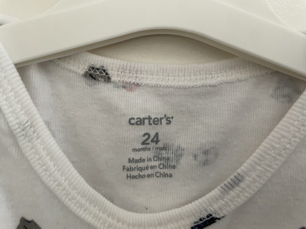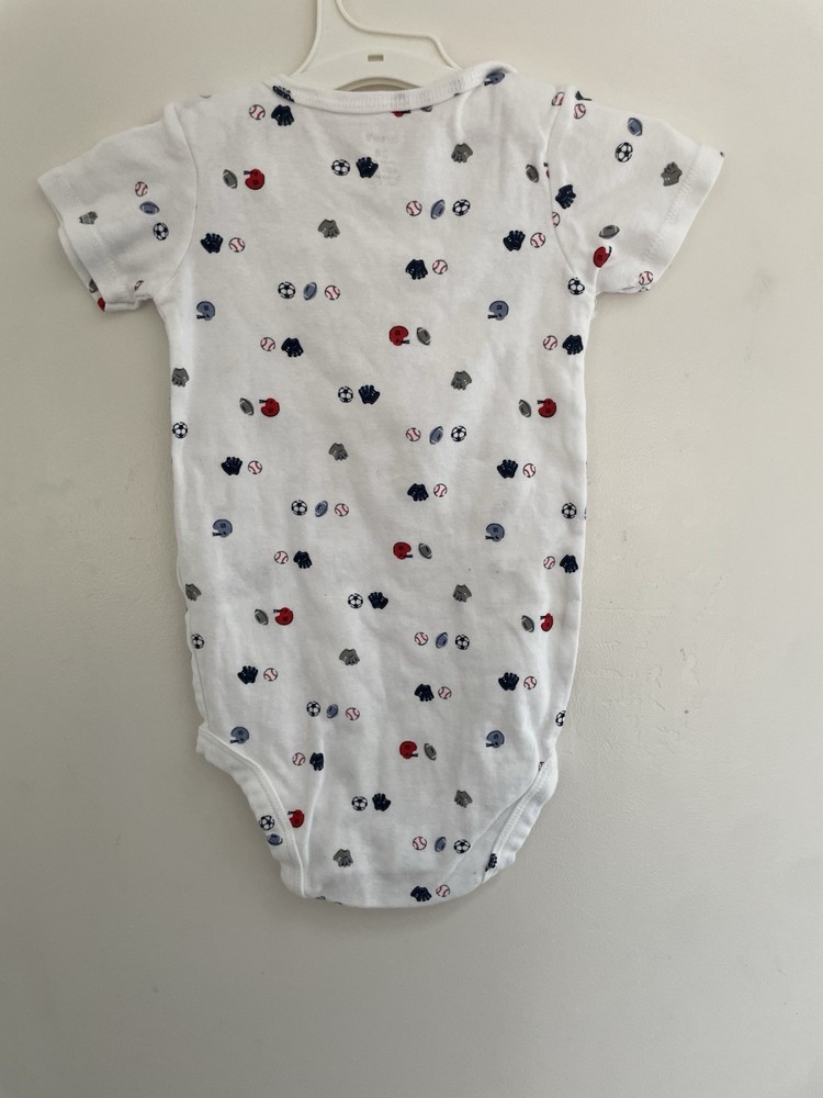 Theme: Sports Type: One-Piece Size: 24 Months Style: Bodysuit Pattern: Sports Balls Character: Boy Set Includes: Bodysuit Brand: Carter's Department: Boys Color: White Sleeve Length: Short Sleeve Closure: Snap Country of Origin: China Number of Pieces: 1 Piece Features: Comfort, Easy Care, Lightweight, Stretch Season: Fall, Spring, Summer Material: 100% Cotton Garment Care: Machine Washable