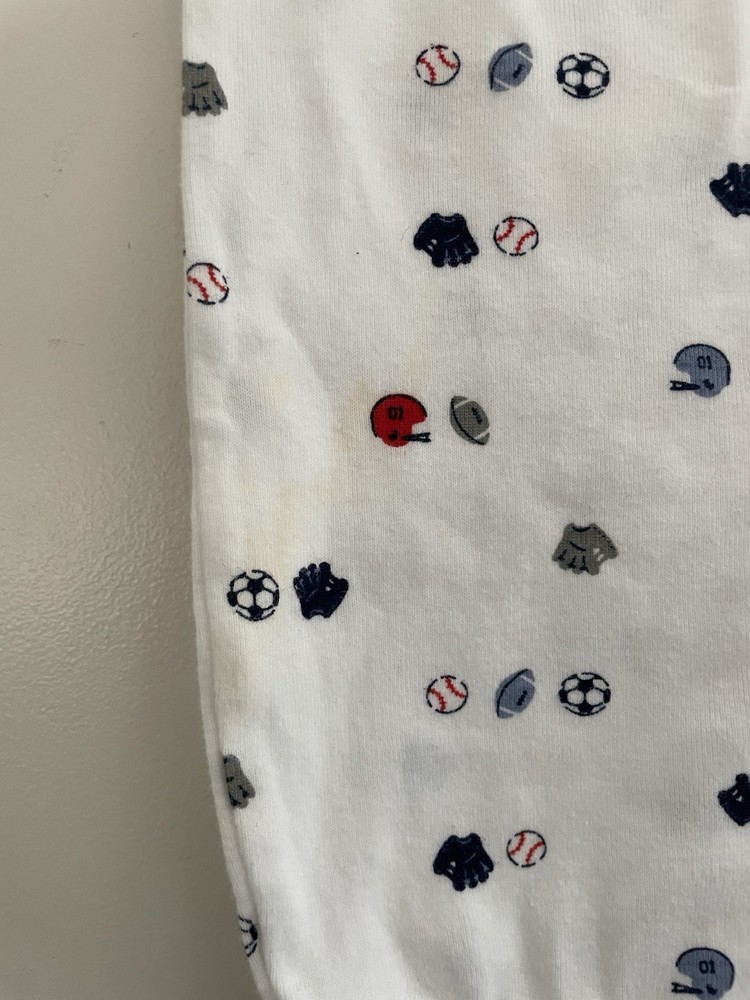 Carters Baby Boy Allover Sports Ball 100% Cotton Short Sleeve Bodysuit White 24M. Condition is pre-owned. Smoke free, pet free home. Shipped via USPS Ground Advantage. In good condition. There is a stain on the front . Free of rips.