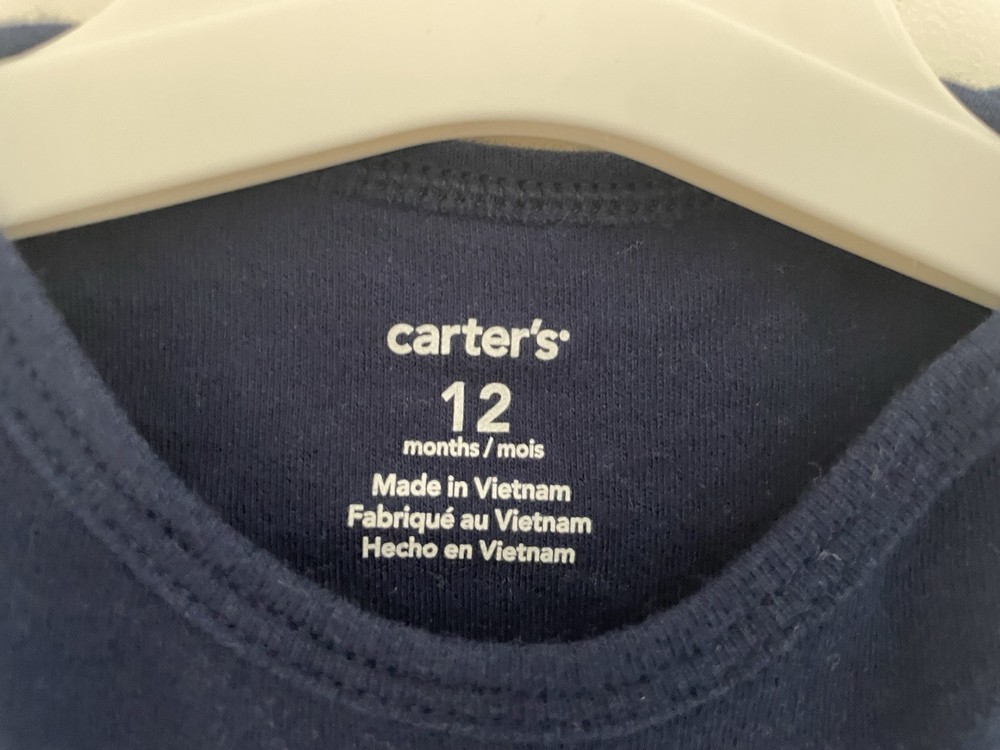 Department: Boys Size: 12 Months Brand: Carter's Sleeve Length: Long Sleeve Type: One-Piece Character: Boy Color: Navy Material: 100% Cotton Set Includes: Bodysuit
