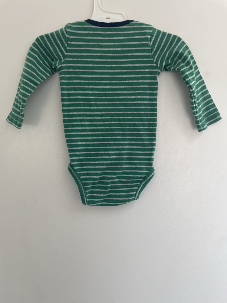 Carter's Baby Boy Cute Dog Graphic Striped Cotton Long Sleeve Bodysuit Green 12M. Condition is pre-owned. Smoke free, pet free home. Shipped via USPS Ground Advantage. In very good condition. Free of rips or stains.