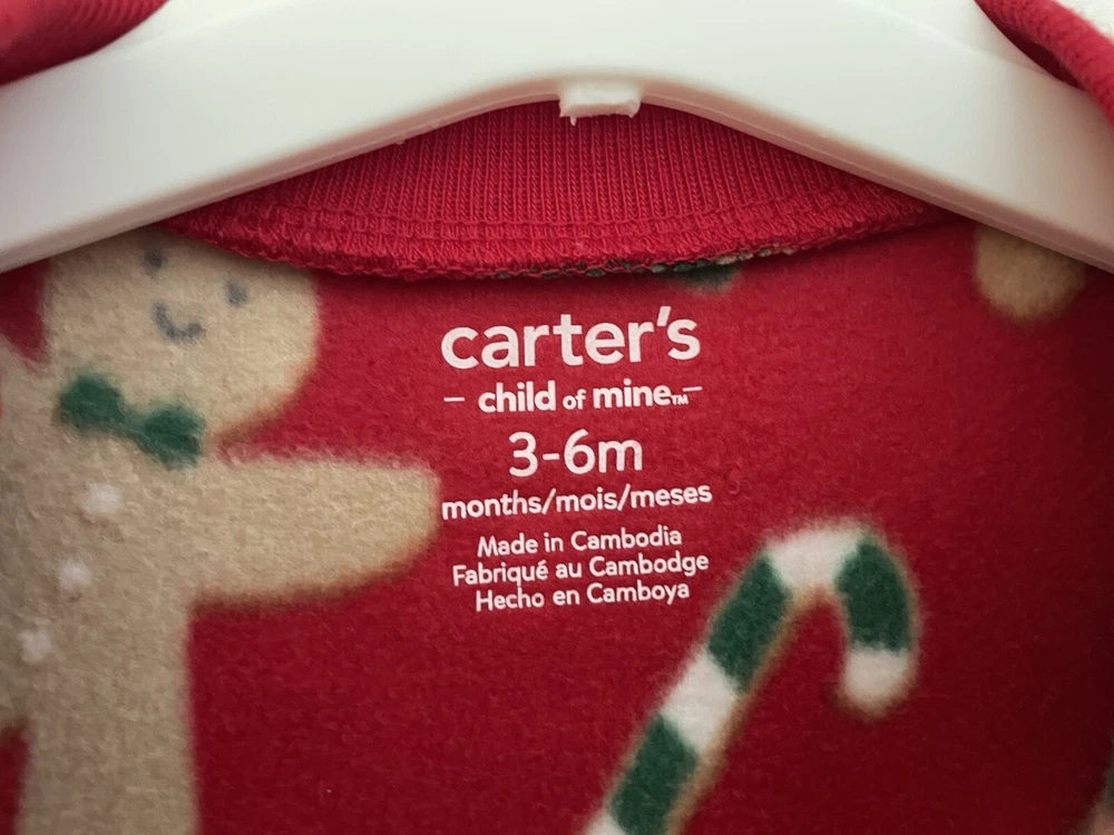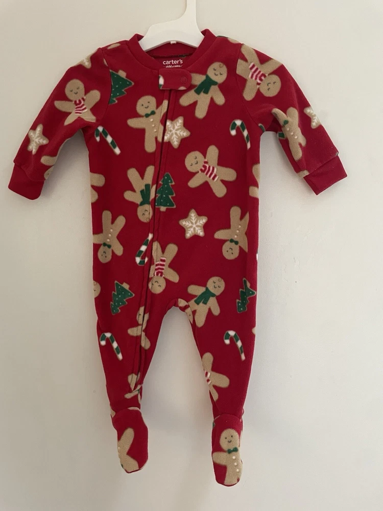 Carters Baby Boy Girl 1-Piece Christmas Gingerbread Man Cozy Fleece PJs Red 3-6M. Condition is pre-owned. Smoke free, pet free home. Shipped via USPS Ground Advantage. In very good condition. Free of rips or stains.