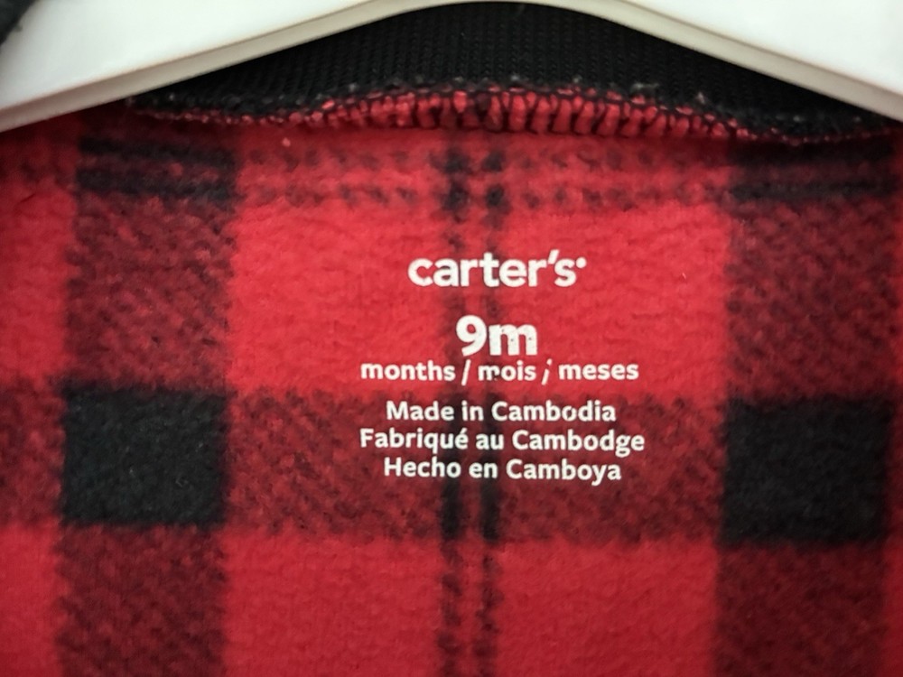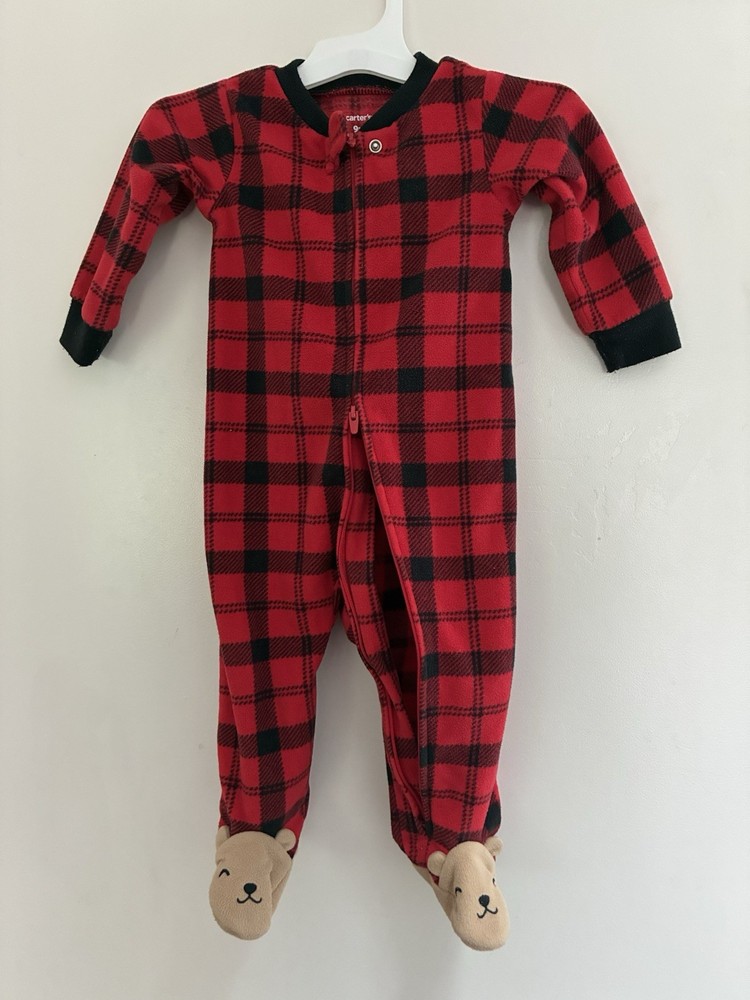 Carter's Baby Boy Girl Cute Bear Footie Cozy Fleece Buffalo Plaid 1-Piece Red 9M. Condition is pre-owned. Smoke free, pet free home. Shipped via USPS Ground Advantage. In very good condition. Free of rips or stains.