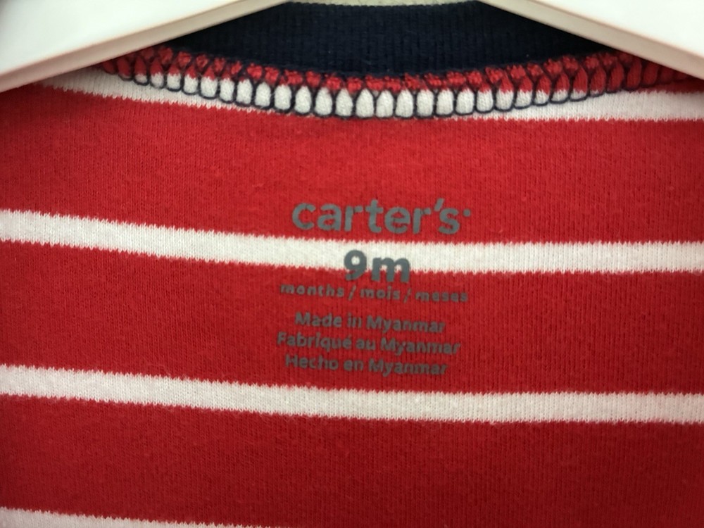 Carter's Baby Boy Little Brother Striped 2-Way Zipper Cotton Sleep & Play Red 9M. Condition is pre-owned. Smoke free, pet free home. Shipped via USPS Ground Advantage. In very good condition. Free of rips or stains.