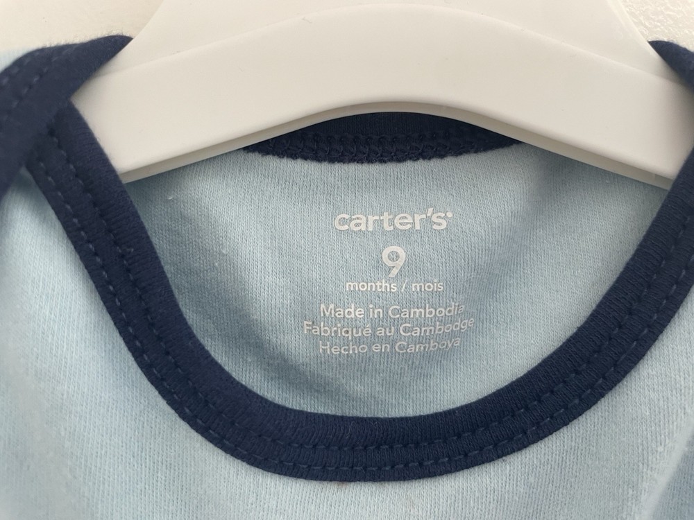 Carter's Baby Boy Mommy's Perfect Gentleman Cotton Short Sleeve Bodysuit Blue 9M. Condition is pre-owned. Smoke free, pet free home. Shipped via USPS Ground Advantage. In good condition. There are light stains on the front. Free of rips.