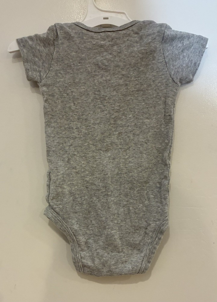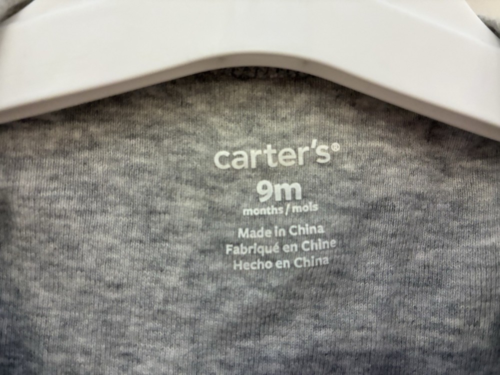 Department: Boys Garment Care: Machine Washable Size: 9 Months Pattern: Graphic Print Country of Origin: China Occasion: Casual Closure: Snap Color: Heather Gray Season: Fall, Spring, Summer Type: One-Piece Brand: Carter's Character: Boy Theme: Food & Drink Style: Bodysuit Set Includes: Bodysuit Number of Pieces: 1 Piece Sleeve Length: Short Sleeve Seller Notes: “In very good condition. Free of rips or stains.” Material: 100% Cotton Features: Comfort, Easy Care, Lightweight, Stretch
