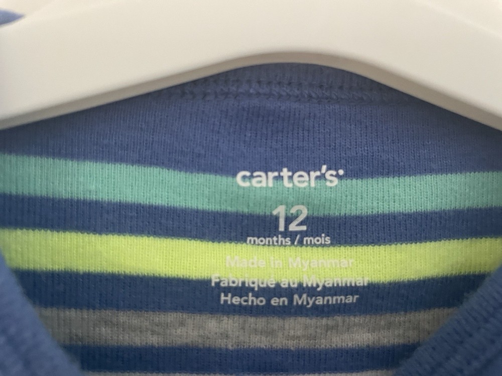 Carter's Baby Boys Colorful Striped Cotton Snap-Up Short Sleeve Romper Blue 12M. Condition is pre-owned. Smoke free, pet free home. Shipped via USPS Ground Advantage. In very good condition. Free of rips or stains.