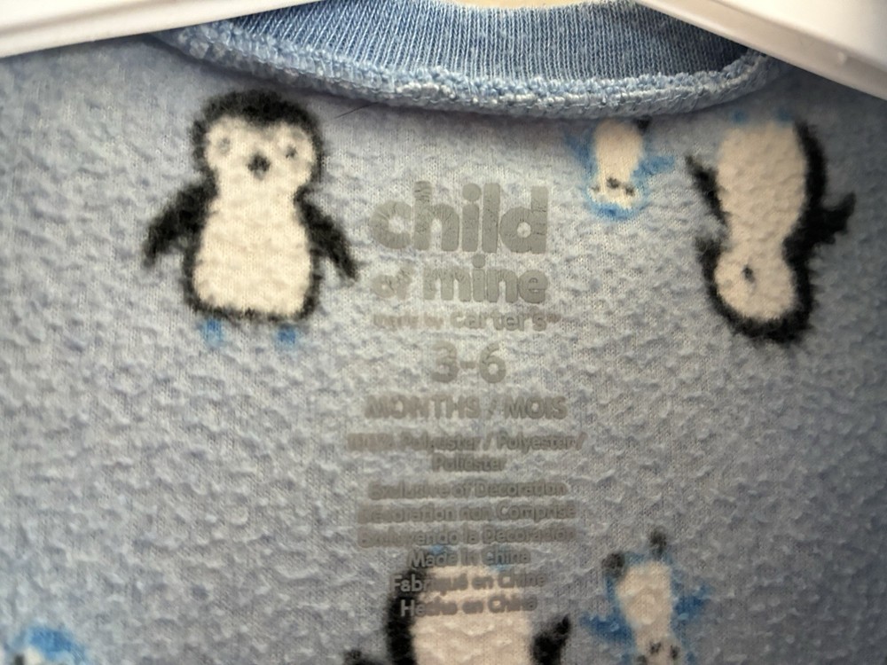 Carter's Baby Boys Cute Penguin Print Cozy Fleece Snap-Up Sleep & Play Blue 3-6M. Condition is pre-owned. Smoke free, pet free home. Shipped via USPS Ground Advantage. In very good condition. Free of rips or stains.