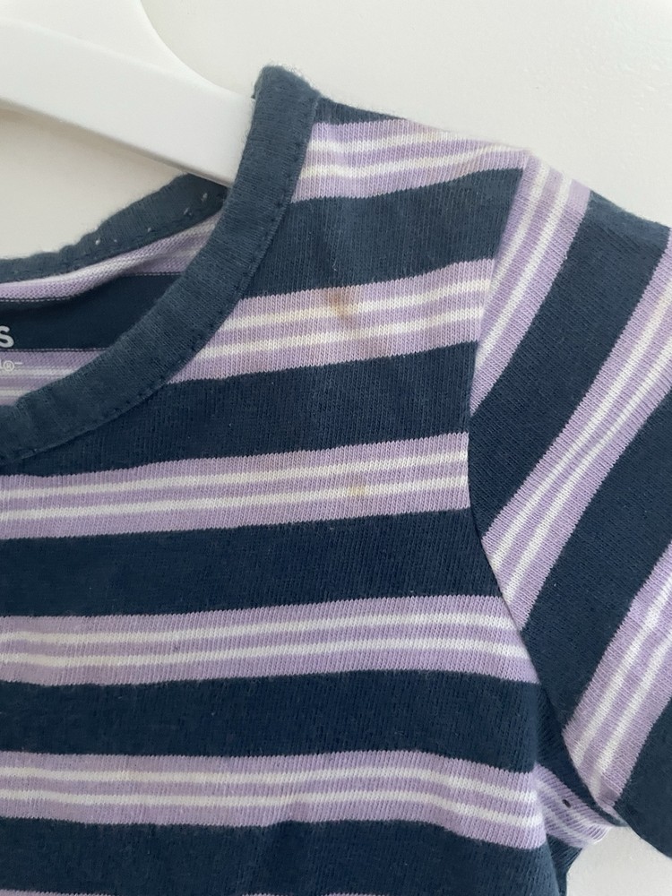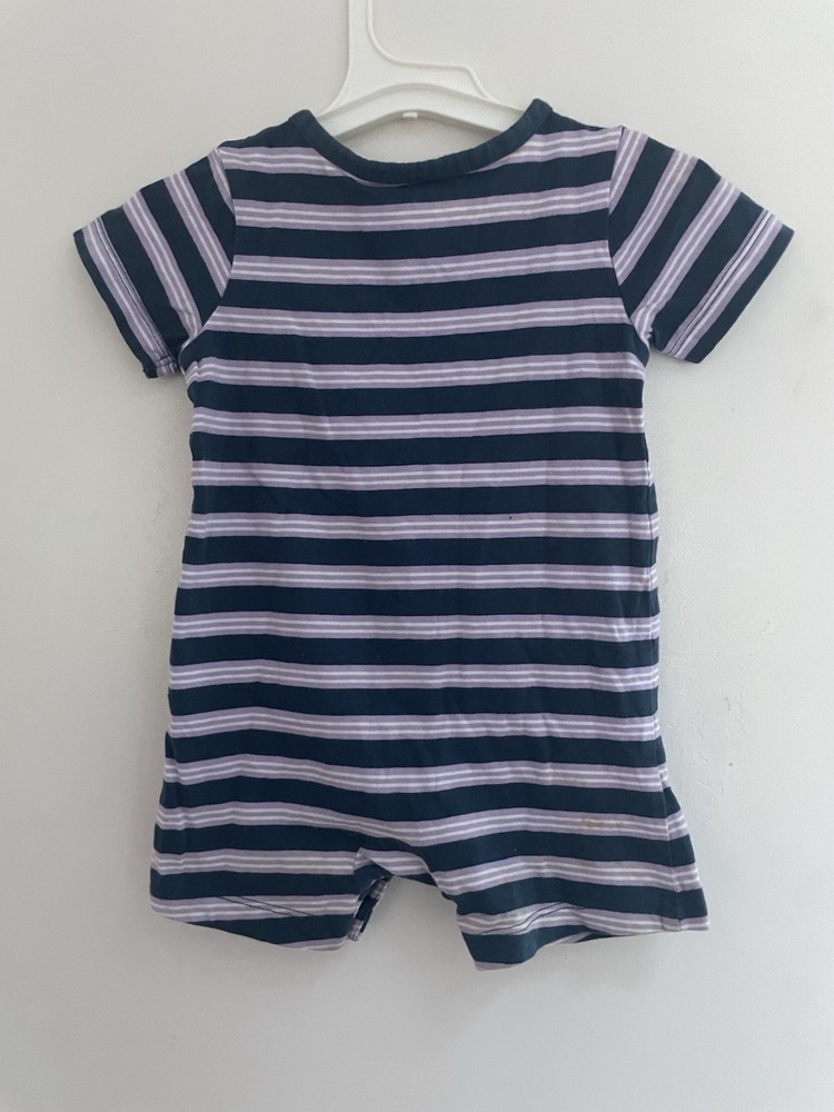 Carter's Baby Boys Girls Striped 100% Cotton Henley Short Sleeve Romper Blue 12M. Condition is pre-owned. Smoke free, pet free home. Shipped via USPS Ground Advantage. In fair condition. There are stains on the front and back. Free of rips.