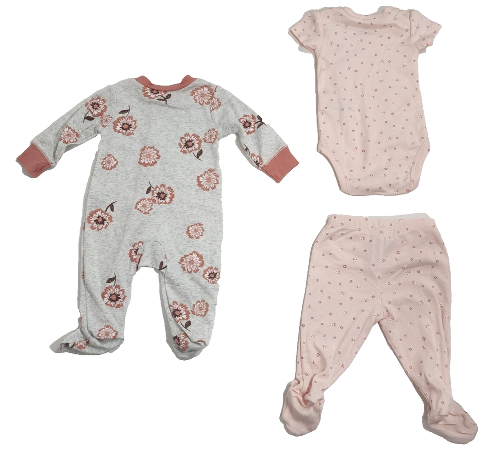 💖 Item Condition: Brand new with original tags attached. Never worn or washed. Smoke-free & pet-free environment. 📝 Item Description: This darling 3-piece set from Carter’s is perfect for your little one’s everyday comfort or as a sweet baby shower gift! Made with soft, breathable 100% cotton, this set is gentle on delicate baby skin and features three versatile essentials in a beautiful pink and floral theme. 📦 Set Includes: 1 short sleeve pink bodysuit with tiny floral print 🌸 1 pair of soft pink footed pants with matching floral print 👣 1 grey zip-up sleeper with allover floral design and contrast trim 🌼 📏 Size: 0–3 Months 👶 Material: 100% Cotton 🎁 Perfect for: Everyday wear, nap time, baby shower gifts, or travel 💡 Features: ✔️ Snaps and zipper closures for easy diaper changes ✔️ Coordinated colors and patterns ✔️ Lightweight and breathable fabric ✔️ Trusted Carter’s quality 🧼 Care Instructions: Machine wash cold, tumble dry low ✨ Dress your baby in cozy, cute, and practical style with this sweet Carter’s set! ✨ 📦 Ships fast and with care!