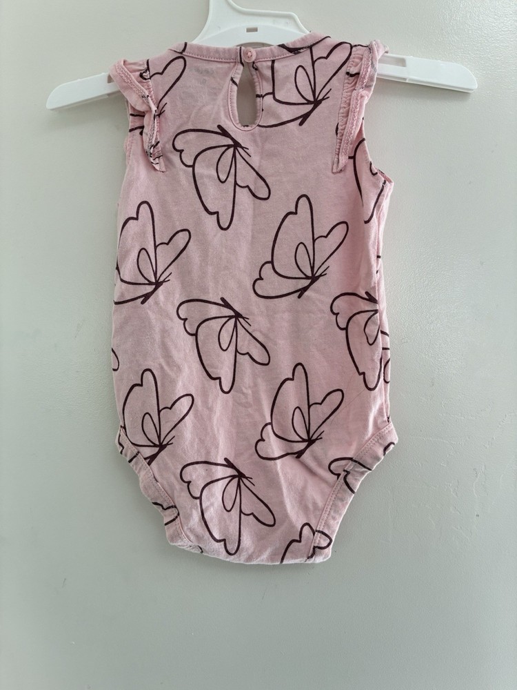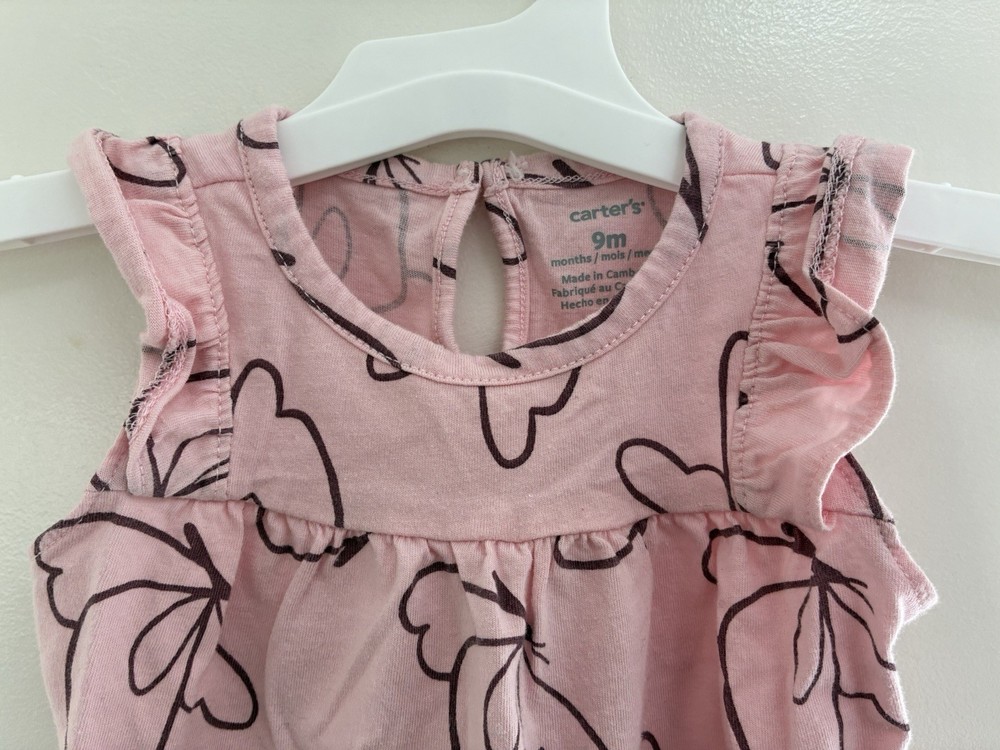 Carter's Baby Girl Allover Butterfly Pleated Ruffle 100% Cotton Bodysuit Pink 9M. Condition is pre-owned. Smoke free, pet free home. Shipped via USPS Ground Advantage. In very good condition. Free of rips or stains.