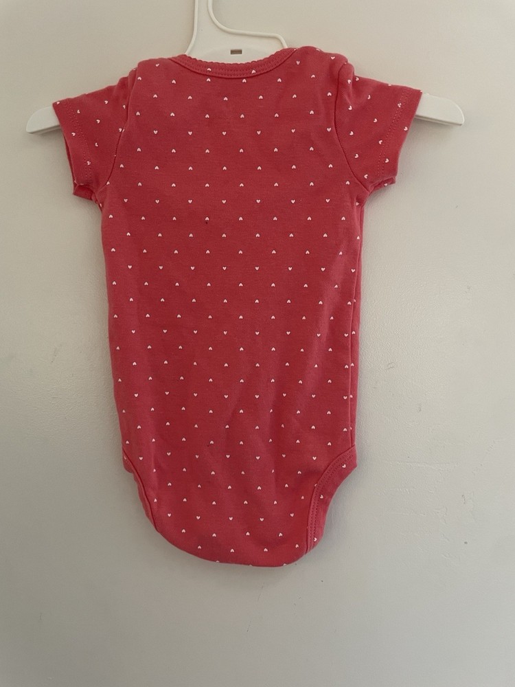 Carters Baby Girl Allover Small Hearts 100% Cotton Short Sleeve Bodysuit Pink 6M. Condition is pre-owned. Smoke free, pet free home. Shipped via USPS Ground Advantage. In very good condition. Free of rips or stains.