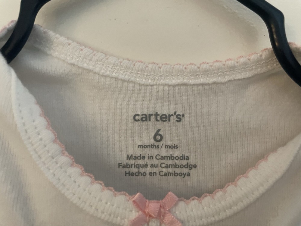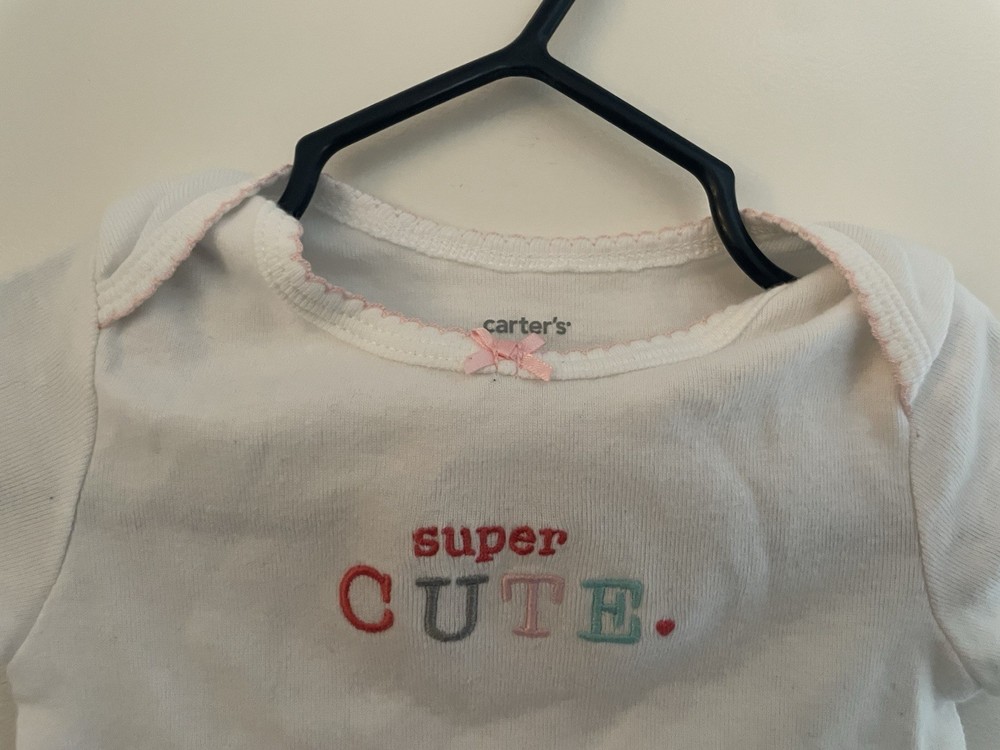 Carters Baby Girl Colorful Super Cute 100% Cotton Short Sleeve Bodysuit White 6M. Condition is new without tags. Smoke free, pet free home. Shipped via USPS Ground Advantage. New, has never been worn before but it got stained on the back.