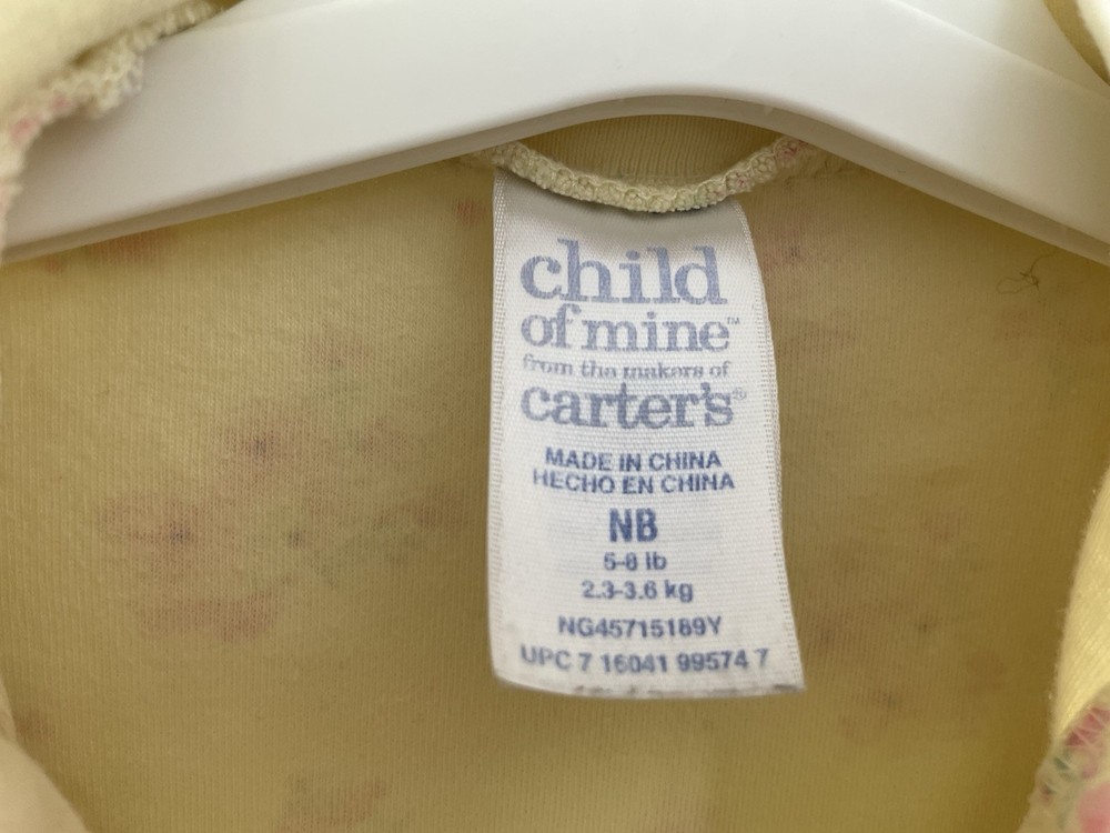 Theme: Flower Seller Notes: “In very good condition. Free of rips or stains.” Brand: Carter's Size: Newborn Number of Pieces: 1 Piece Type: One-Piece Country of Origin: China Color: Yellow Pattern: Floral Material: 100% Cotton Accents: Bow Closure: Snap Season: Fall, Spring, Summer, Winter Occasion: Casual Style: Sleep & Play Department: Girls Sleeve Length: Long Sleeve Garment Care: Machine Washable Features: Comfort, Easy Care, Lightweight, Stretch