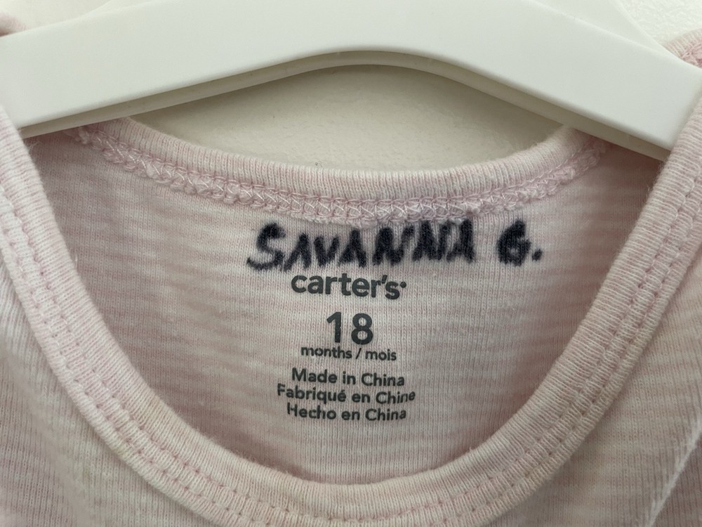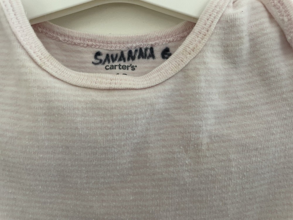 Carter's Baby Girls Classic Striped 100% Cotton Short Sleeve Bodysuit Pink 18M. Condition is pre-owned. Smoke free, pet free home. Shipped via USPS Ground Advantage. In good condition. There is a light stain on the front. Free of rips.