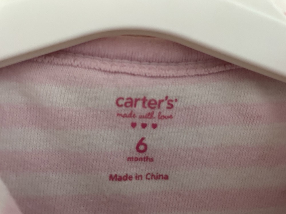 Style: Sleep & Play Number of Pieces: 1 Piece Brand: Carter's Sleeve Length: Long Sleeve Accents: Embroidered, Lace Type: One-Piece Department: Girls Theme: Animals, Cat Features: Comfort, Easy Care, Lightweight, Stretch Size: 6 Months Pattern: Striped Season: Fall, Spring, Winter Fabric Type: Terry Seller Notes: “In good condition. There is a small hole at the seam of the sleeve. Free of stains.” Garment Care: Machine Washable Material: 82% cotton, 18% polyester Country of Origin: China Closure: Snap Occasion: Casual Color: Pink