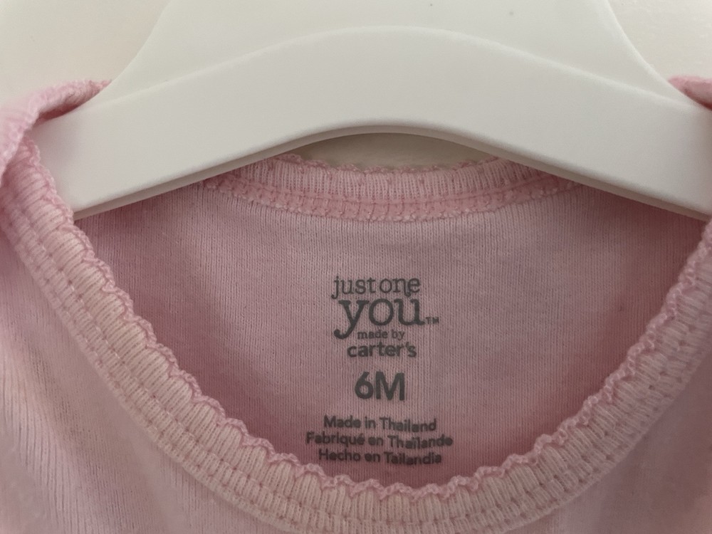 Sleeve Length: Short Sleeve Neckline: Crew Neck Accents: Embroidered, Lace Style: Bodysuit Country of Origin: Thailand Pattern: Floral Closure: Snap Size: 6 Months Features: Comfort, Easy Care, Lightweight, Stretch Set Includes: Bodysuit Garment Care: Machine Washable Material: 100% Cotton Brand: Carter's Department: Girls Type: One-Piece Number of Pieces: 1 Piece Seller Notes: “In good condition. There are light stains on the front. Free of rips.” Color: Pink Theme: Animals, Bird, Flower Occasion: Casual Season: Fall, Spring, Summer