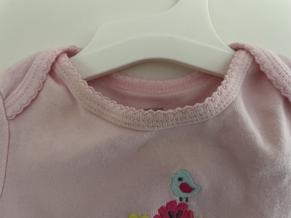 Carter's Baby Girls Embroidered Floral Bird Cotton Short Sleeve Bodysuit Pink 6M. Condition is pre-owned. Smoke free, pet free home. Shipped via USPS Ground Advantage. In good condition. There are light stains on the front. Free of rips.
