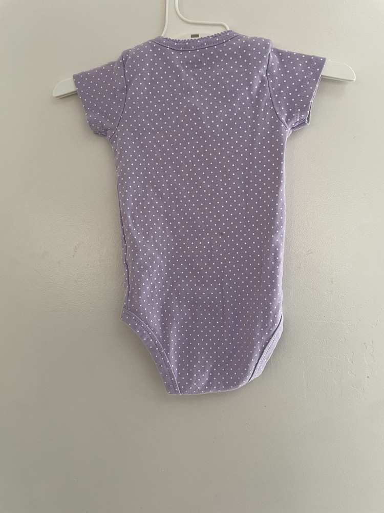 Carter's Baby Girls Floral Butterfly Polka Dot 100% Cotton Bodysuit Lavender 6M. Condition is pre-owned. Smoke free, pet free home. Shipped via USPS Ground Advantage. In very good condition. Free of rips or stains.