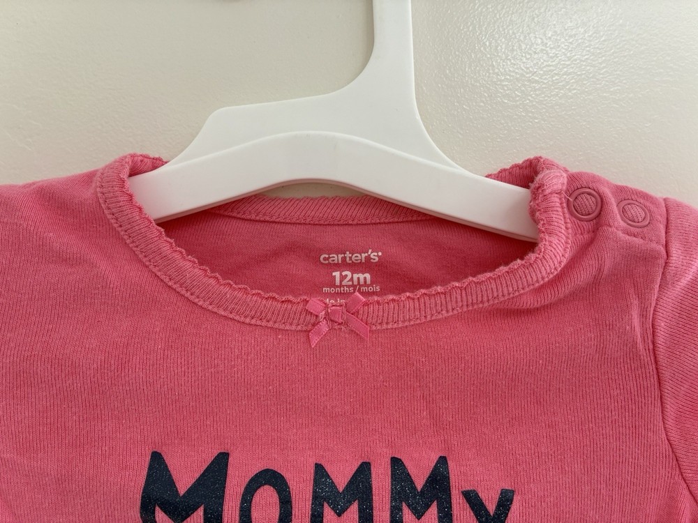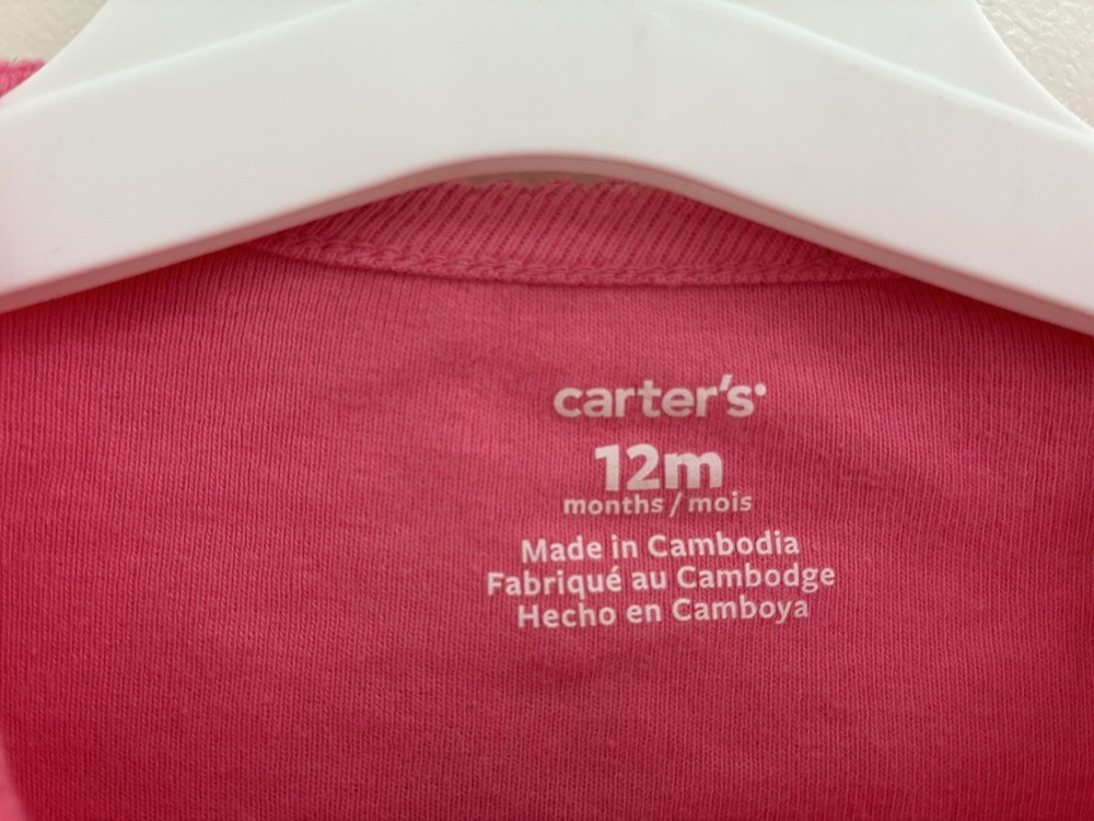 Pattern: Graphic Print Material: 100% Cotton Department: Girls Country of Origin: Cambodia Theme: Dinosaurs Set Includes: Bodysuit Garment Care: Machine Washable Closure: Snap Style: Bodysuit Type: One-Piece Number of Pieces: 1 Piece Occasion: Casual Seller Notes: “In very good condition. Free of rips or stains.” Brand: Carter's Sleeve Length: Long Sleeve Color: Pink Accents: Bow, Glitter, Lace, Tulle skirt on dinosaur Features: Comfort, Easy Care, Lightweight, Stretch Size: 12 Months Season: Fall, Spring, Winter