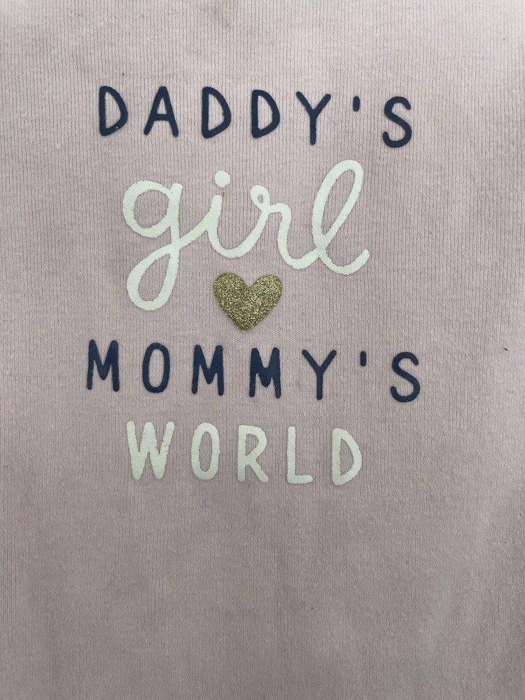 Color: Pink Pattern: Graphic Print Style: Bodysuit Country of Origin: Cambodia Sleeve Length: Long Sleeve Garment Care: Machine Washable Set Includes: Bodysuit Features: Comfort, Easy Care, Lightweight, Stretch Number of Pieces: 1 Piece Type: One-Piece Closure: Snap Department: Girls Season: Fall, Spring, Winter Material: 100% Cotton Occasion: Casual Theme: Dad Size: 18 Months Brand: Carter's Accents: Glitter